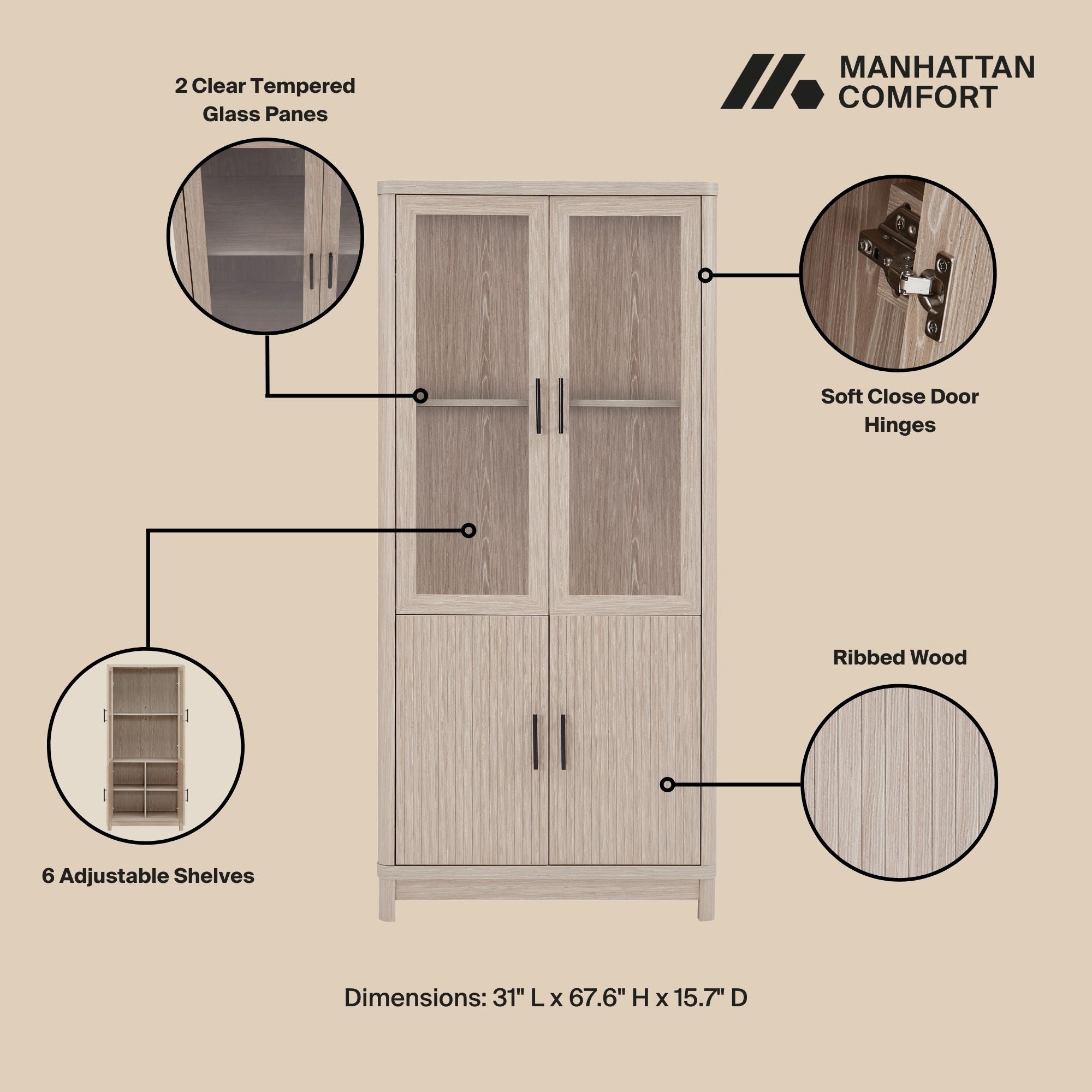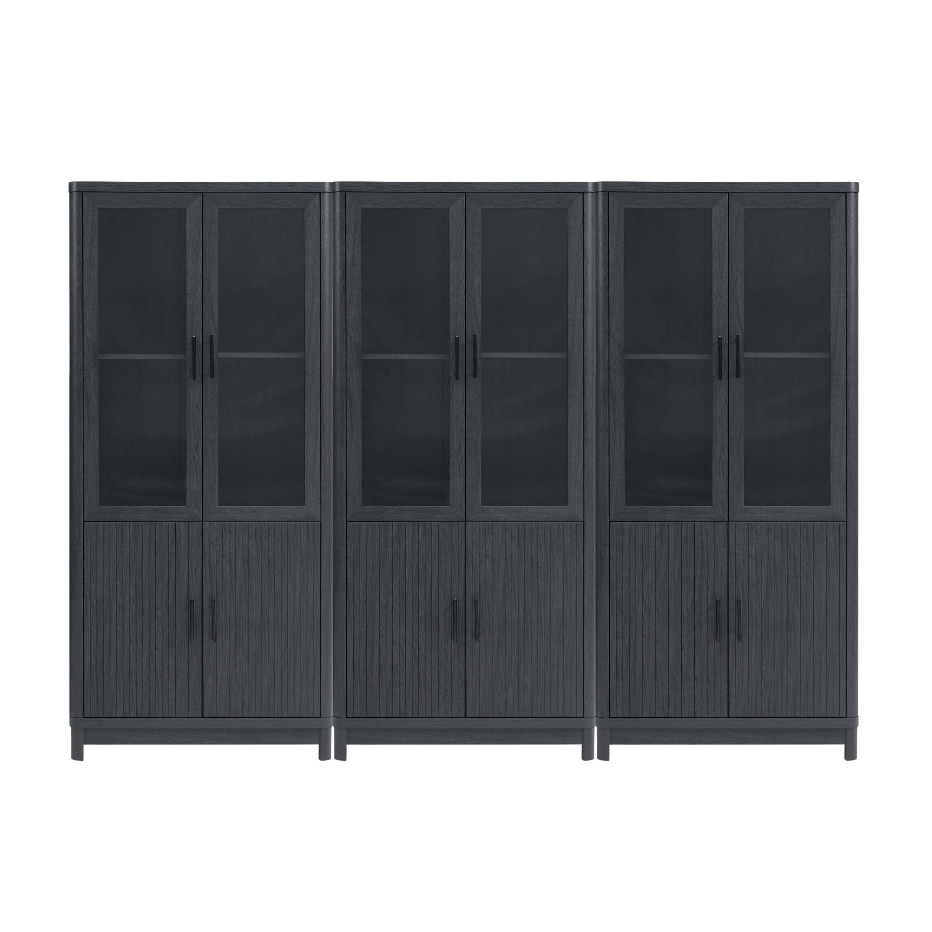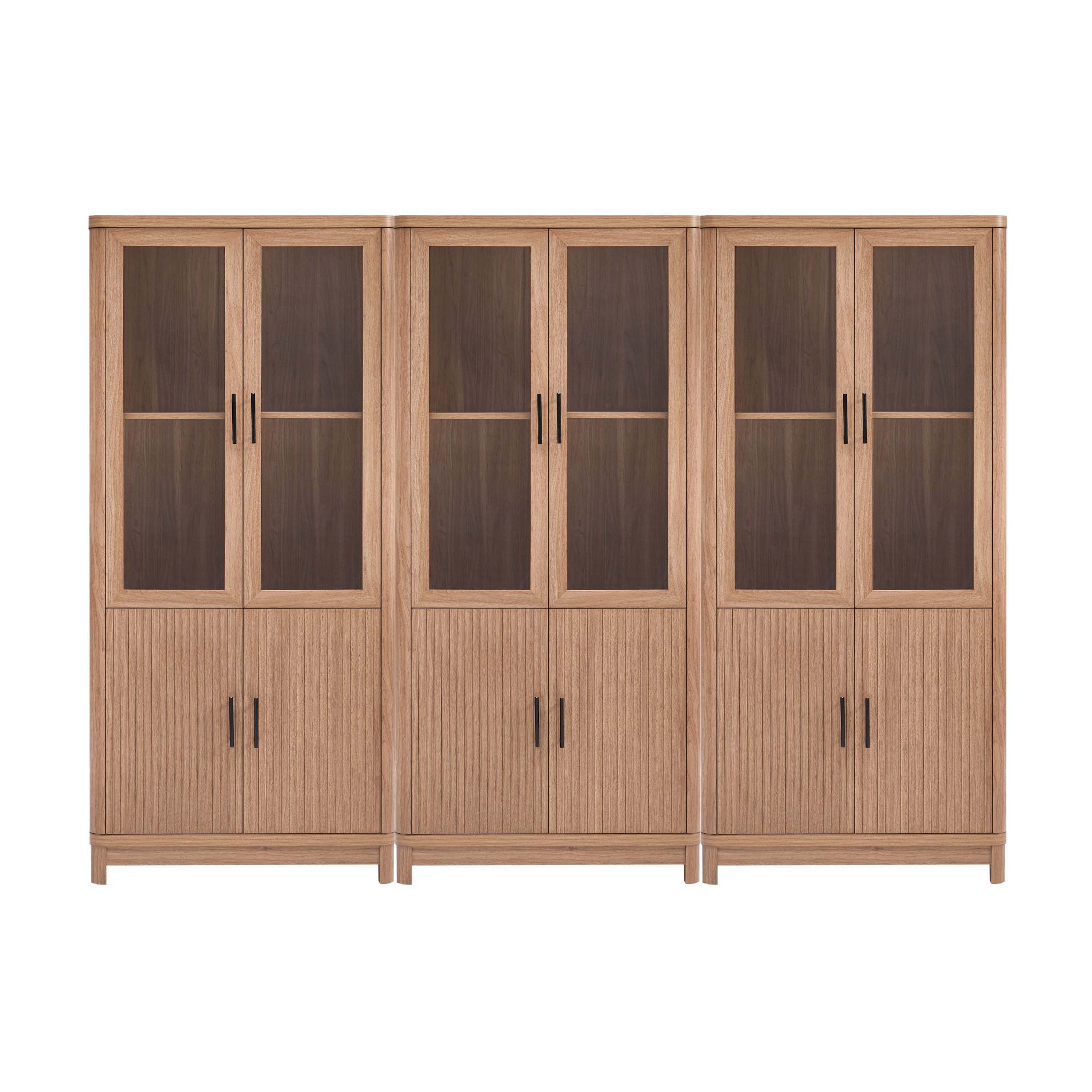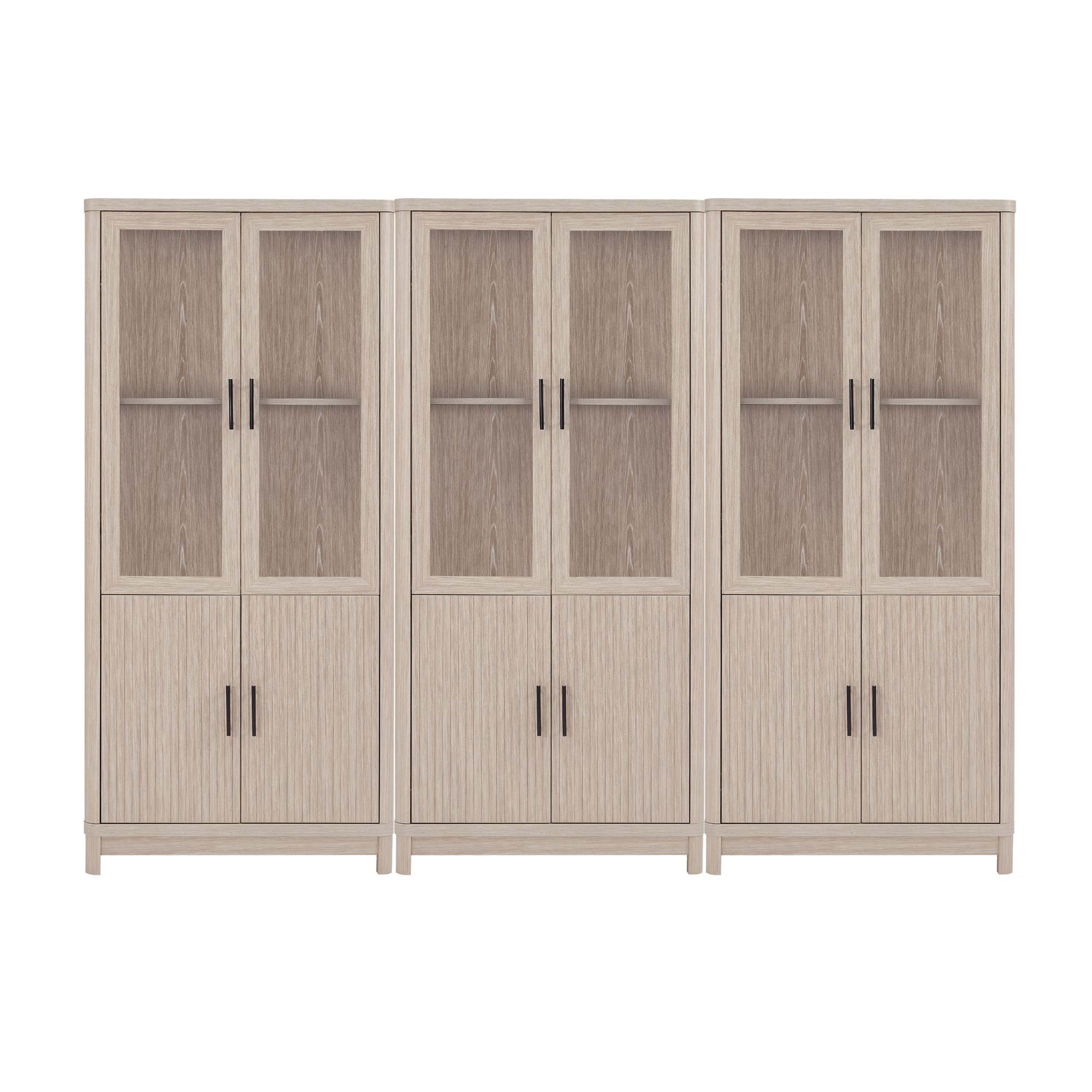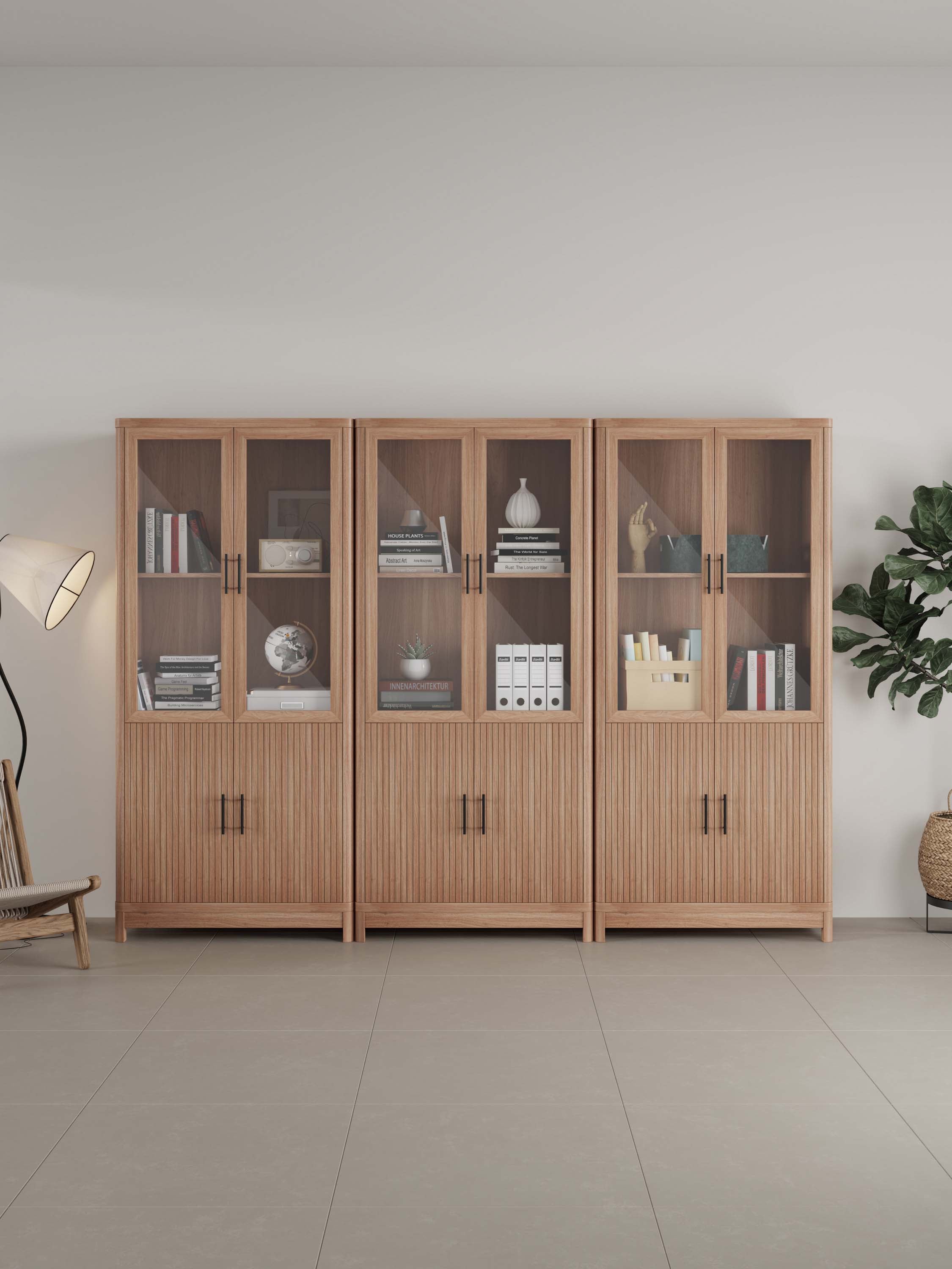 - Each Bookcase Includes 2 Soft Close Tempered Glass Panel Display on Top and 2 Ribbed Manufactured Wood Soft Close on Bottom.