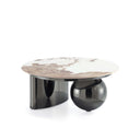 Experience the epitome of modern elegance with the Laurel Collection. Its contemporary black steel base and lustrous sintered stone tops effortlessly elevate any space, while the ingenious design allows the end table to slide above the coffee table for a captivating layered effect. Whether acquired together or separately, the Laurel Collection offers a timeless fusion of style and versatility, transforming your living space into a realm of contemporary sophistication.- Modern Coffee Table for Living Room Use.
