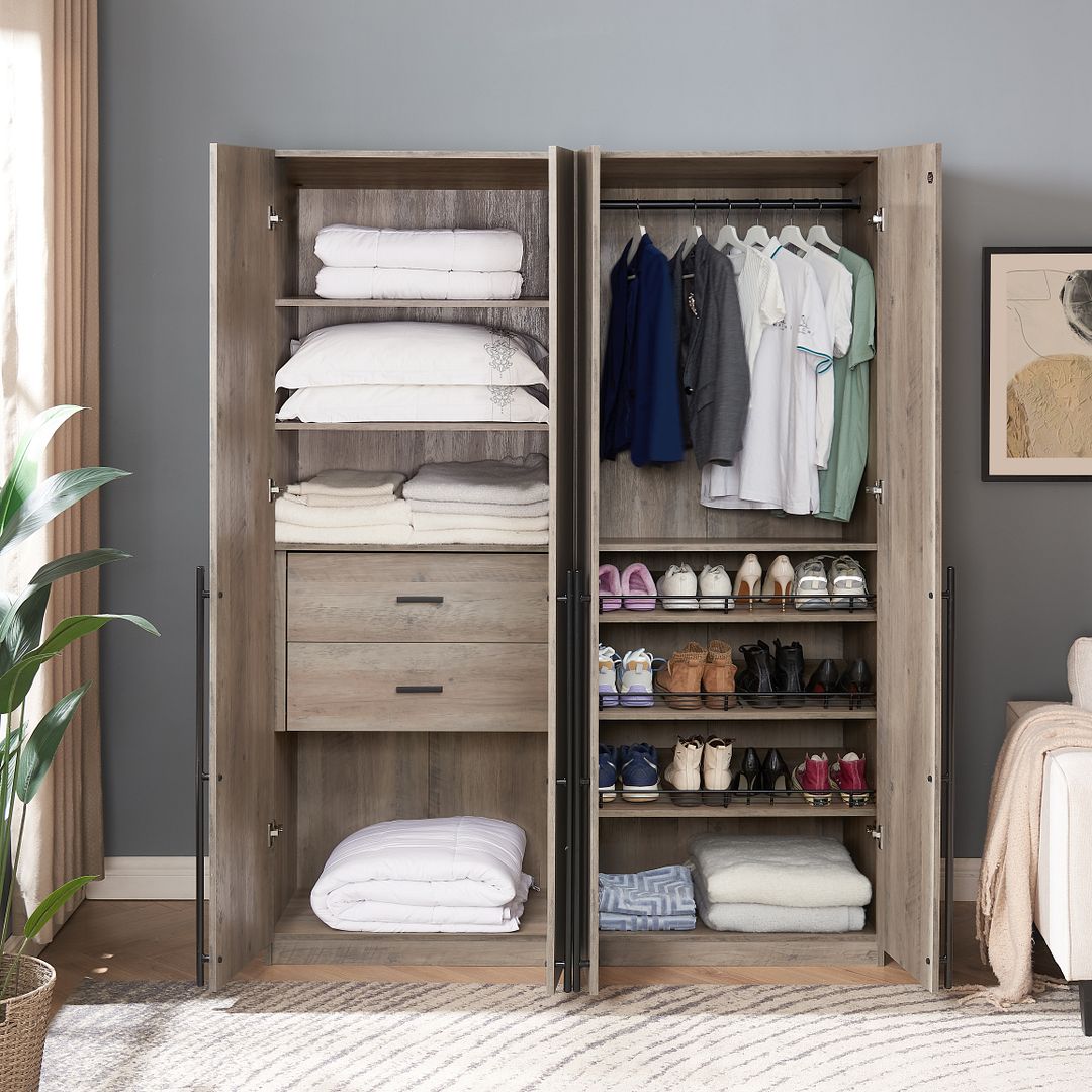 In the realm of storage sophistication, these modular closets redefine versatility, with each unit a plush canvas awaiting personalization. Their adaptable design, invites you to mix and match units, creating a bespoke storage symphony that echoes the rhythm of your lifestyle. As you seamlessly blend compartments and , these closets become a harmonious ode to organization and style.- Modern Free Standing Sectional Wardrobe Closet with Hanging Rod, , , and Shoe for Bedroom and Storage Use. - Set of 2