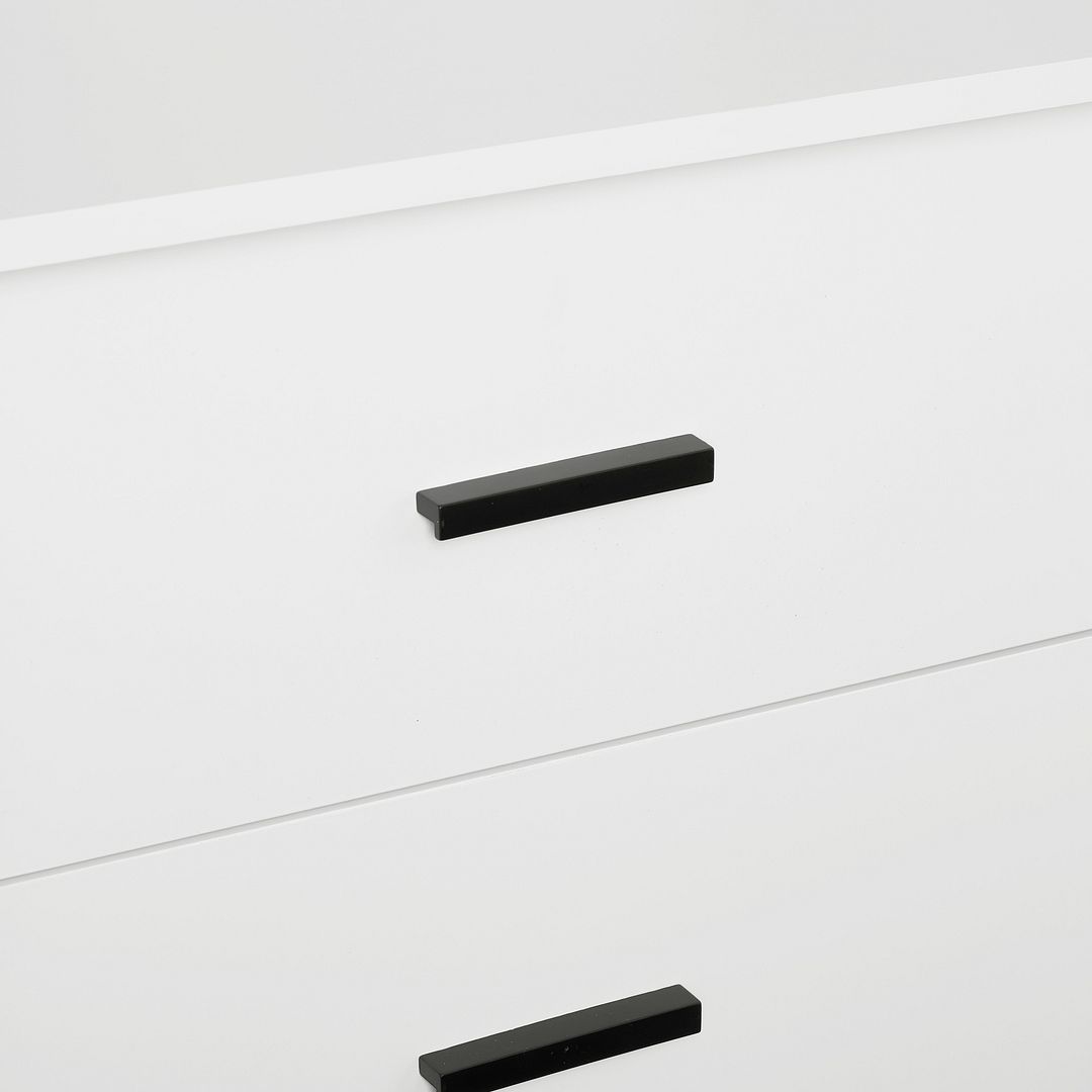 - 90° Open Door Style with Long Vertical Black Metal Handles and Soft Close Hinges