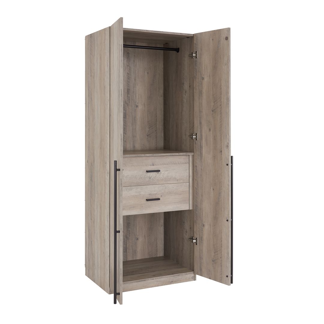 - Closet 1 Includes a Sturdy Metal Clothes Rail, 2 Full Extension , and a Large Storage Space.Closet 2 Includes a Sturdy Metal Clothes Rail, 3 Adjustable Shoe Storage , and a Large Storage Space.