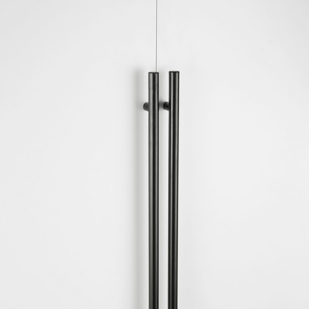 - 90° Open Door Style with Long Vertical Black Metal Handles and Soft Close Hinges