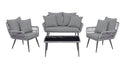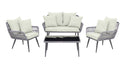 - Modern 4-Piece Outdoor Conversation Patio Set with 2 Armchairs, 1 Loveseat, and 1 Coffee Table.