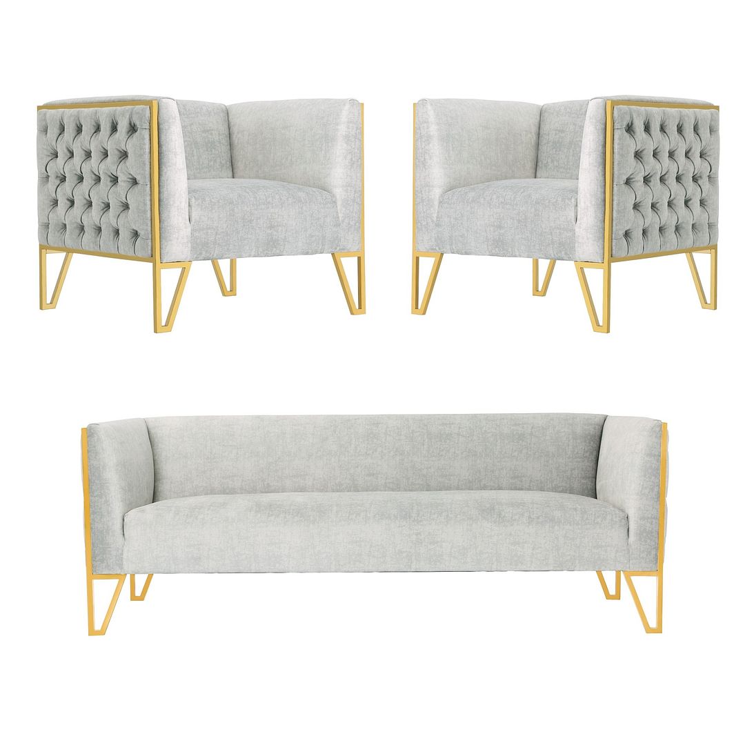 - Mid-Century Modern 1-Piece Sofa and 2-Piece Armchair Set Perfect for Living Room Use. Set of 3