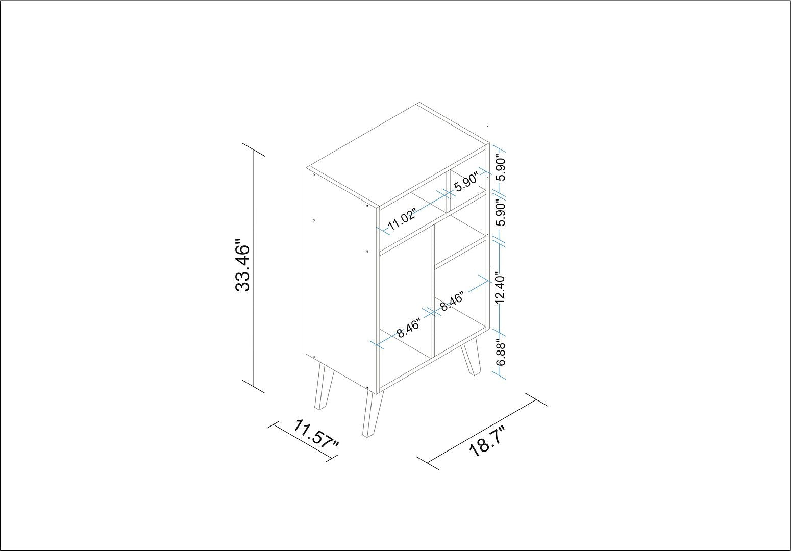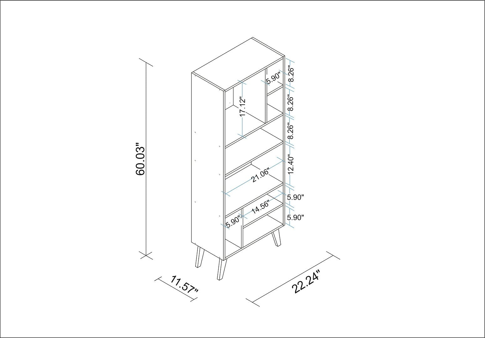 - Upon Assembly, Measures: 22.24 in. Length, 60.03 in. Height, 11.57 in Depth.