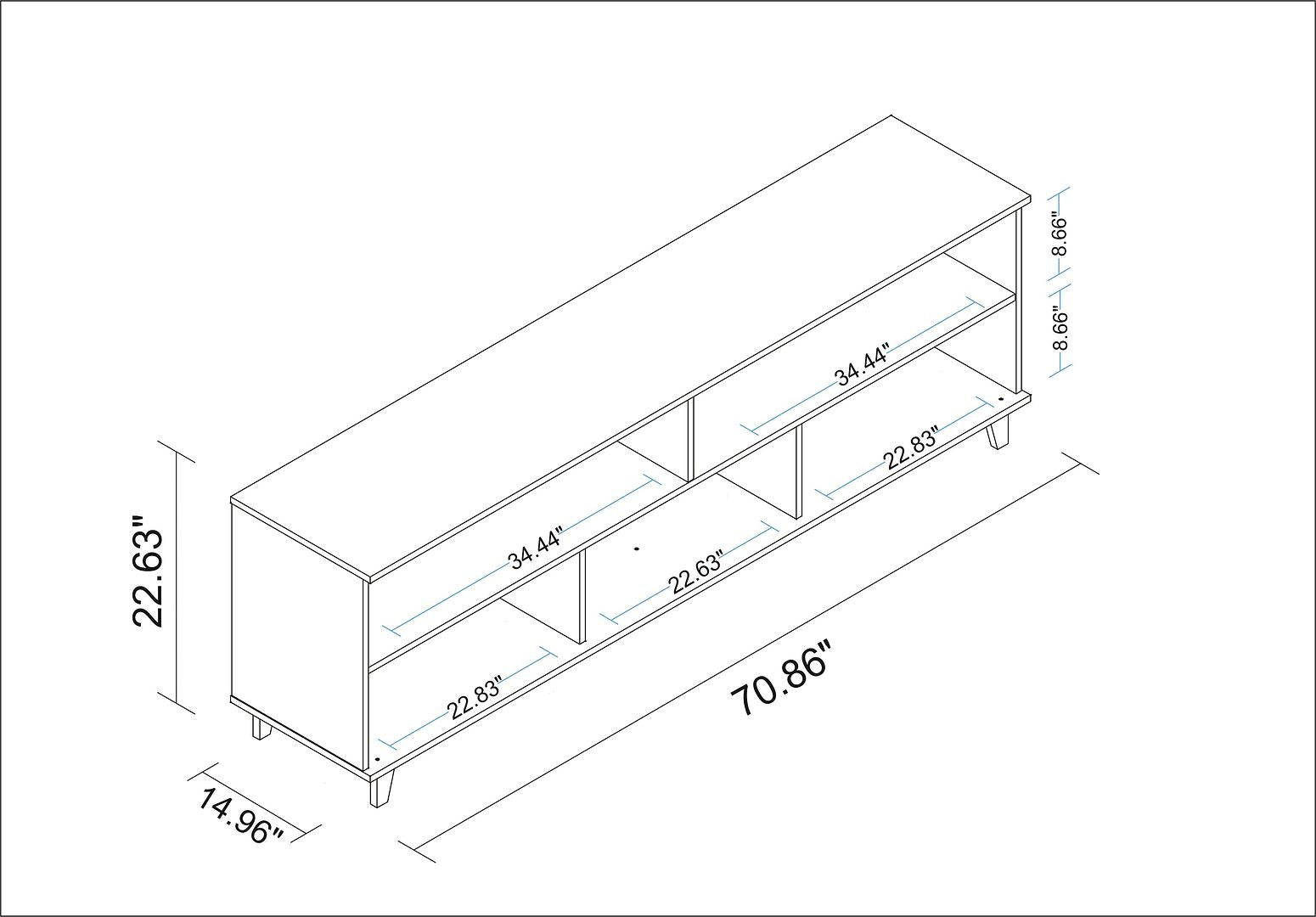 - W X H X D : 70.76 in. Length, 22.63 in. Height, 14.96 in Depth.