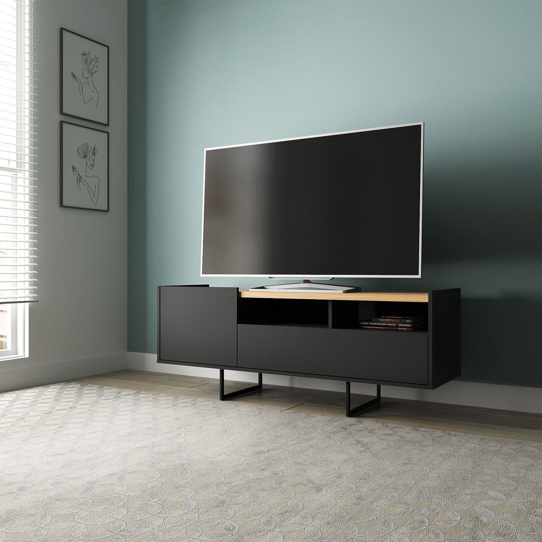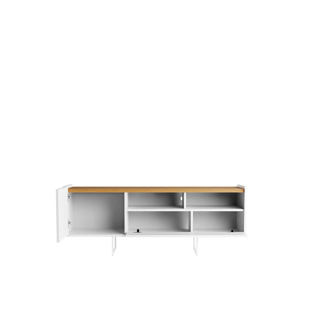 With a nod to classic Mid-Century design, the Winston TV Stand is where style and functionality meet, highlighted by careful craftsmanship, while offering ample storage space in a stylish piece that will complement any space. Featuring concealed and open shelving, the piece simplifies showcasing your books, media consoles, and more while concealed storage ensures you'll never misplace remotes or gaming accessories. Classic clean lines keep to a subtle design aesthetic, and easily blend well with existing decor. A likely focal point to your living space, the Winston represents a place for family and friends to gather for conversation and memories, or Netflix marathon.- Modern Free Standing TV Stand for Living Room and Bedroom use.