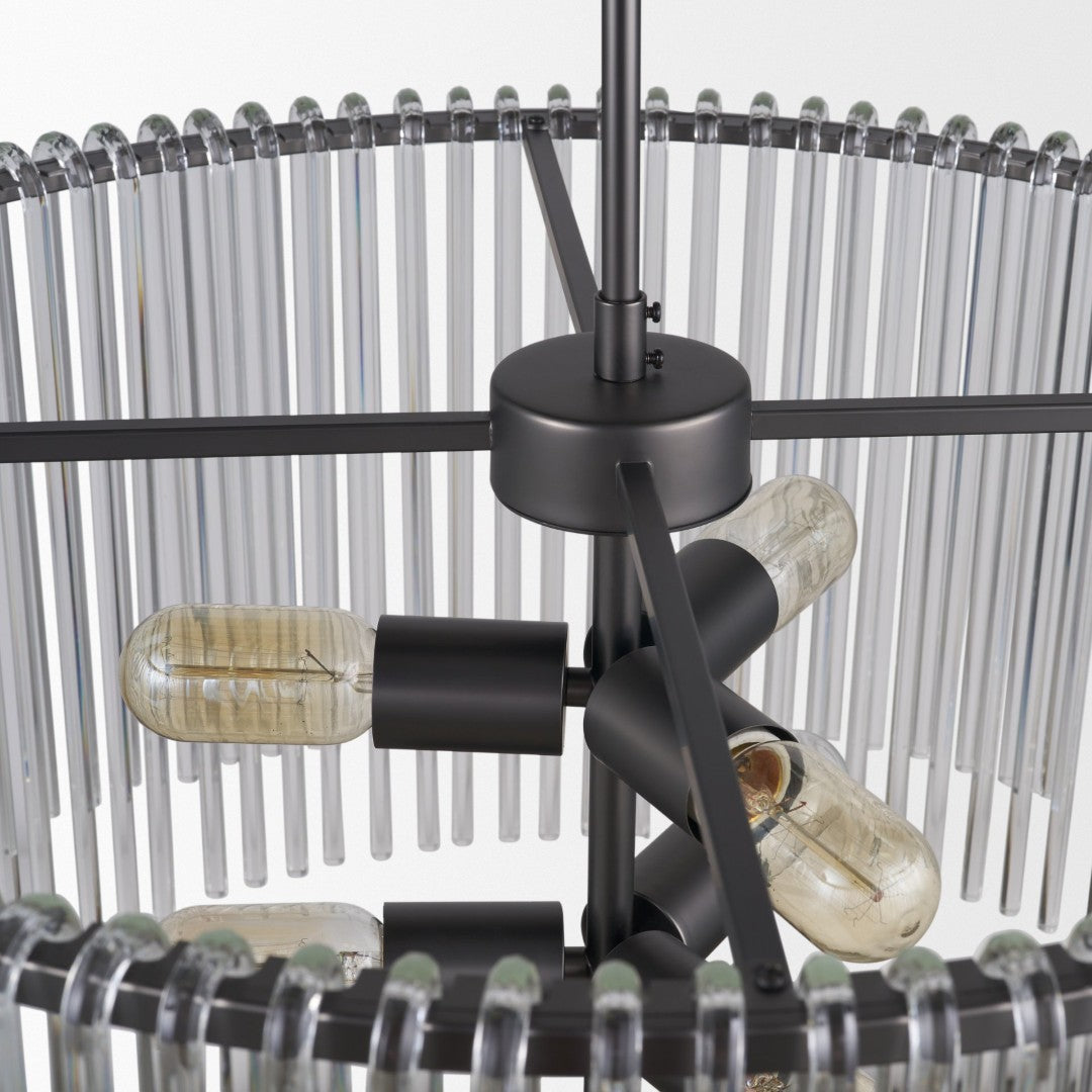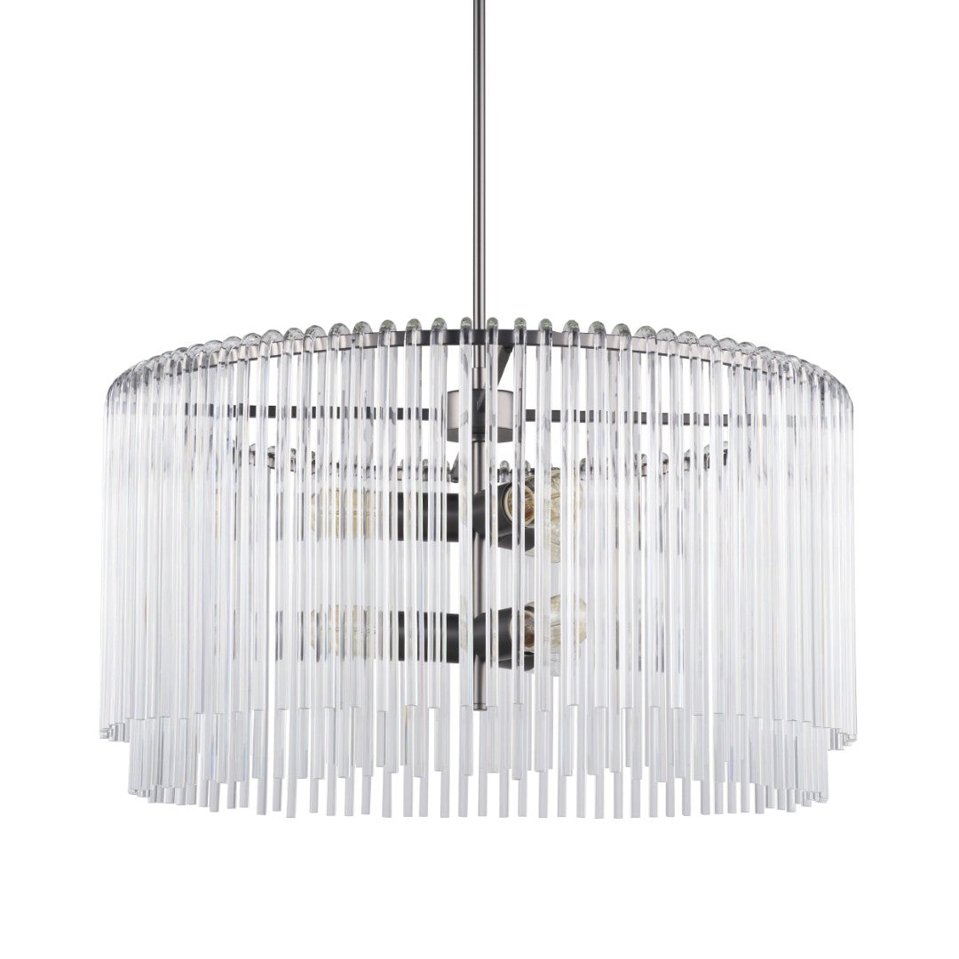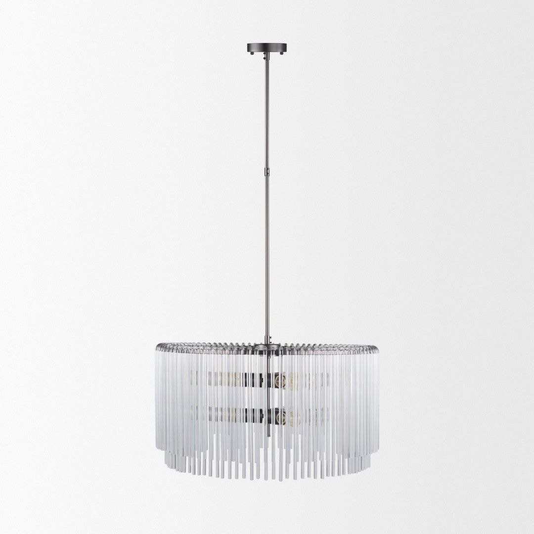 Bring dramatic, icy elegance to your space with this striking six-bulb chandelier. Inspired by icicles, it pairs a drum-shaped metal frame in a gun-metal gray finish with suspended clear glass rods for a radiant, sculptural effect—perfect for modern, glam, and contemporary interiors.