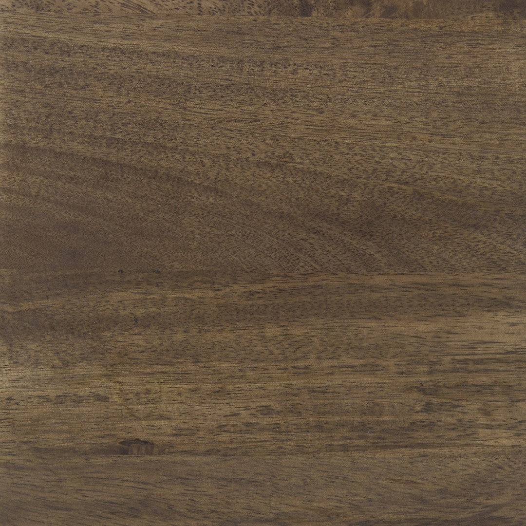 - The wood is smooth textured in a warm, light brown finish that highlights its natural beauty. The iron base features an unfussy, matte black finish.