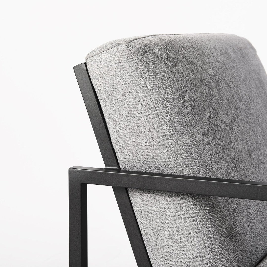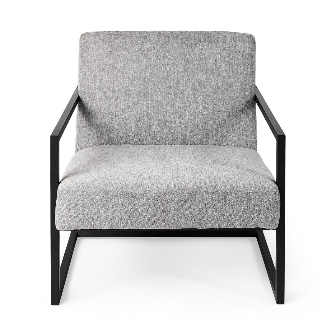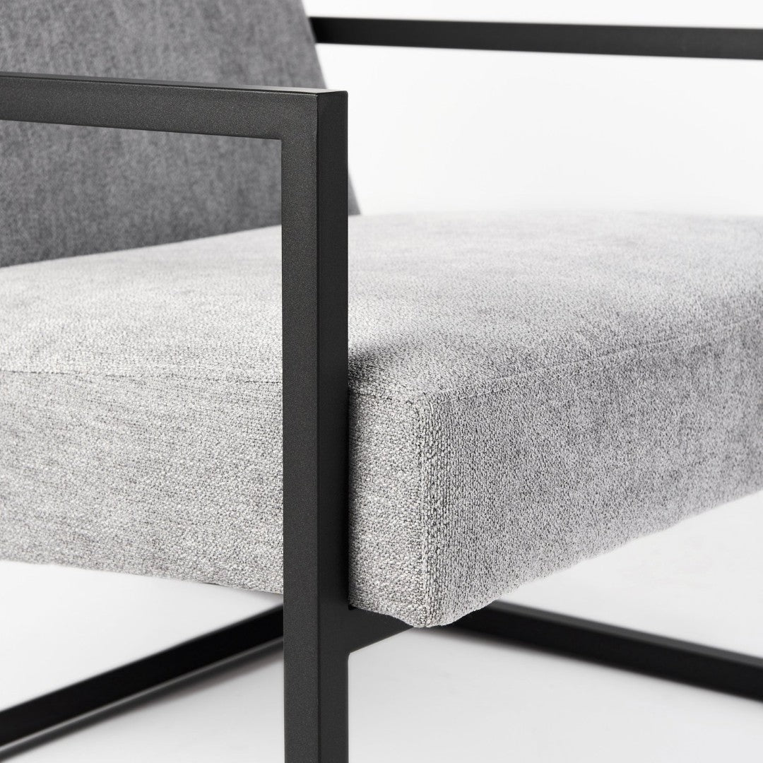 An effortlessly cool accent chair that blends industrial edge with contemporary comfort. The Armelle pairs a gunmetal iron frame with cool gray upholstery for a geometric, low-profile silhouette that works equally well as a standout statement piece or paired seating. Its angular lines and open-frame arms give a modern, architectural feel while the padded fabric seat and back provide approachable comfort.