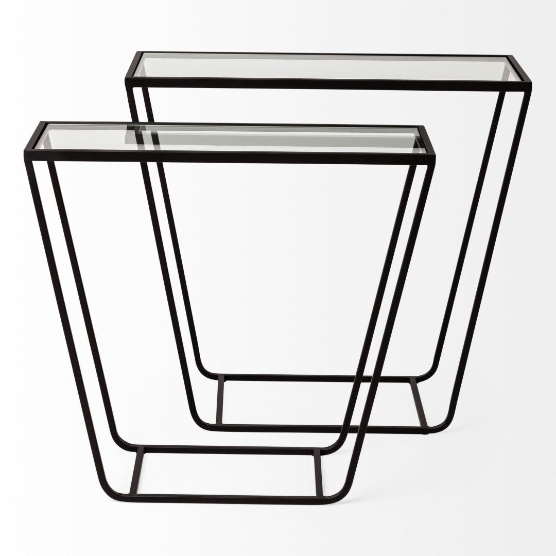 Bring modern industrial flair to your living space with this striking set of two rectangular glass-top accent tables. Combining a sleek tinted glass surface with geometric iron frames, these tables offer both visual interest and dependable function—ideal as side tables, sofa companions, or display stands in contemporary, urban loft, or relaxed modern interiors.