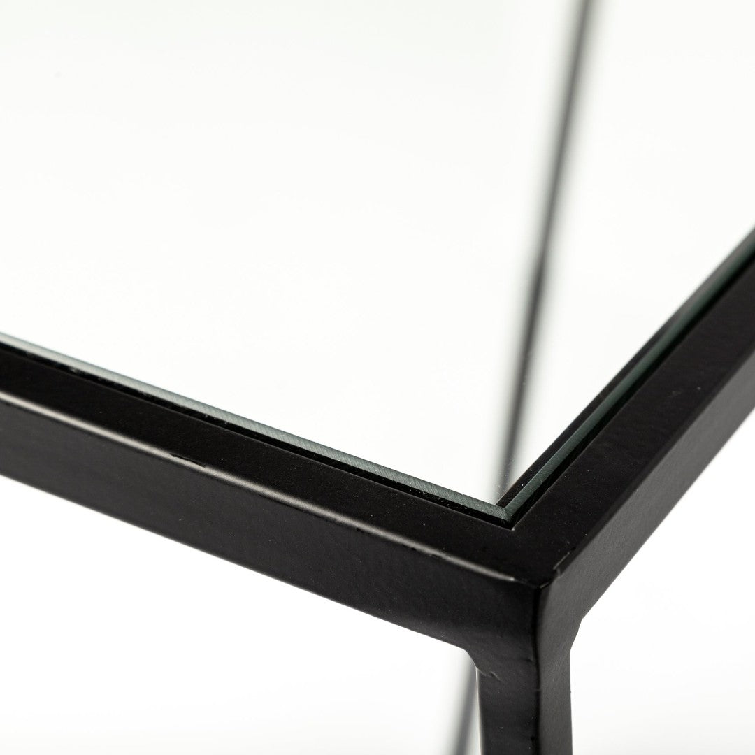 - Finish: Smooth, polished black glass top and complementary iron frame finish
