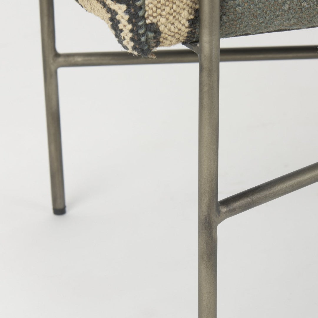 - Materials & Finish: Upholstered fabric seat paired with durable metal construction in an antiqued finish for long-lasting wear