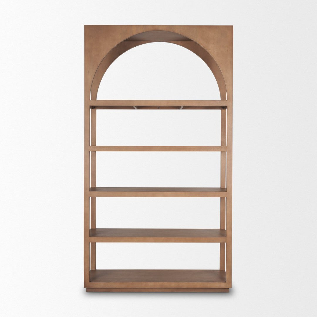 Bring timeless warmth and sculptural elegance to your space with this arched mango wood shelving unit. Crafted from solid mango wood in a medium brown finish, its paired arched frames and five open shelves create an airy, architectural silhouette that works equally well as a focal display or practical storage solution in living rooms, entryways, home offices, or bedrooms.