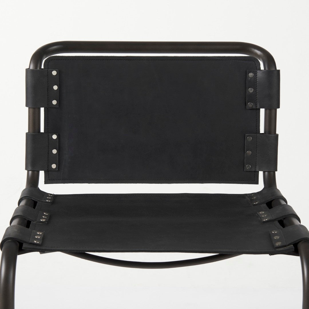 - Materials: Main material: metal frame with leather seating for durability and easy maintenance