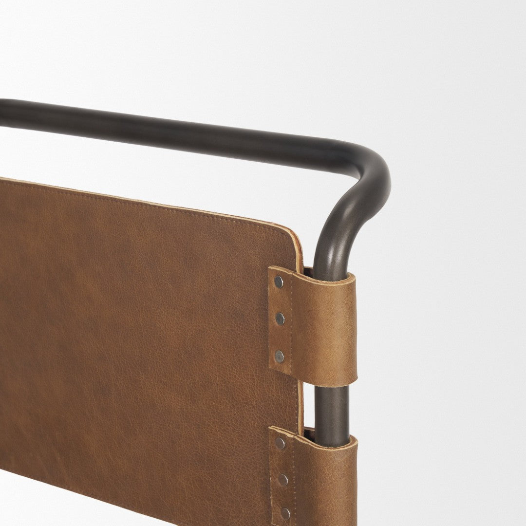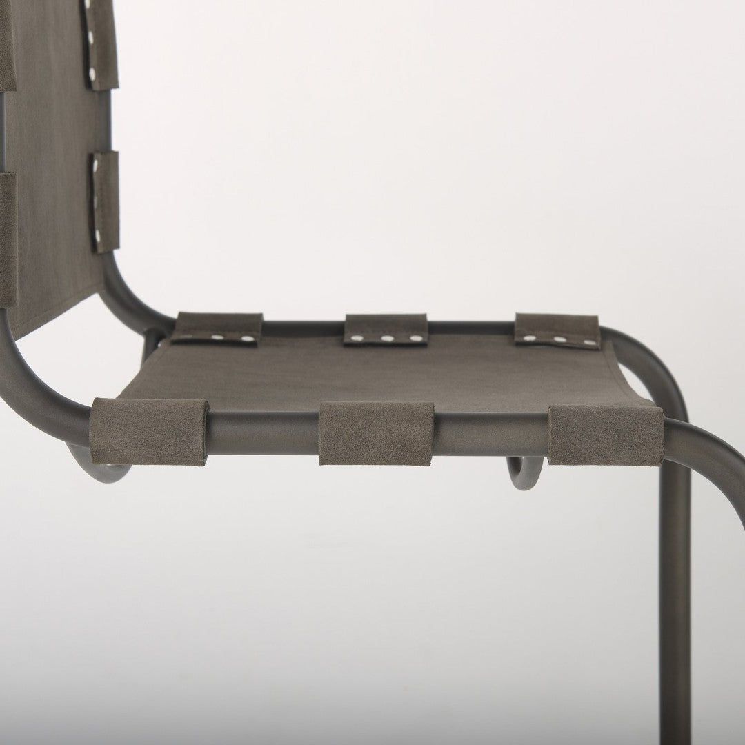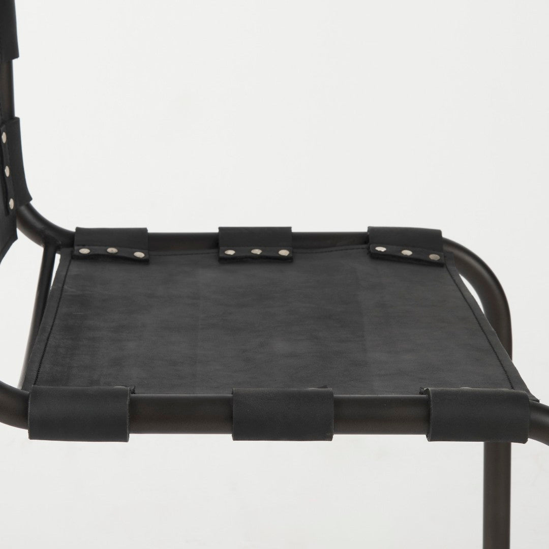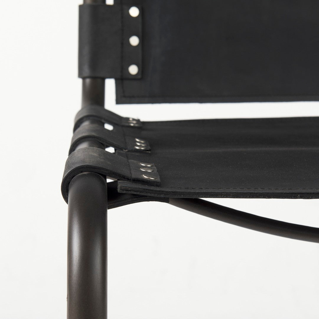Elevate your dining area with the Berbick dining chair — a sleek, industrial-modern piece that blends top-grain leather comfort with a sturdy iron frame. Its open-back silhouette and gun metal gray cantilever base create a refined yet rugged look that complements modern farmhouse, urban loft, and contemporary interiors. Delivered pre-assembled for immediate use, this chair balances style, durability, and everyday comfort.