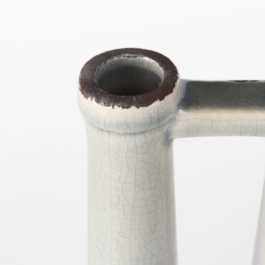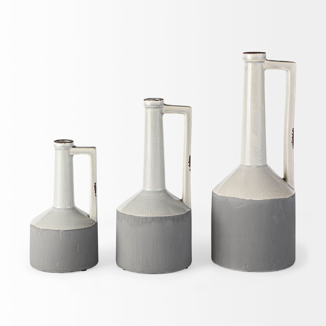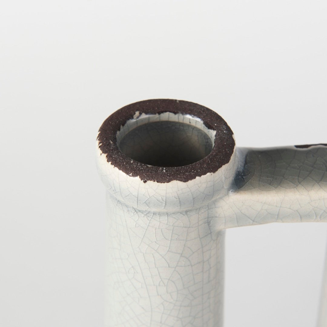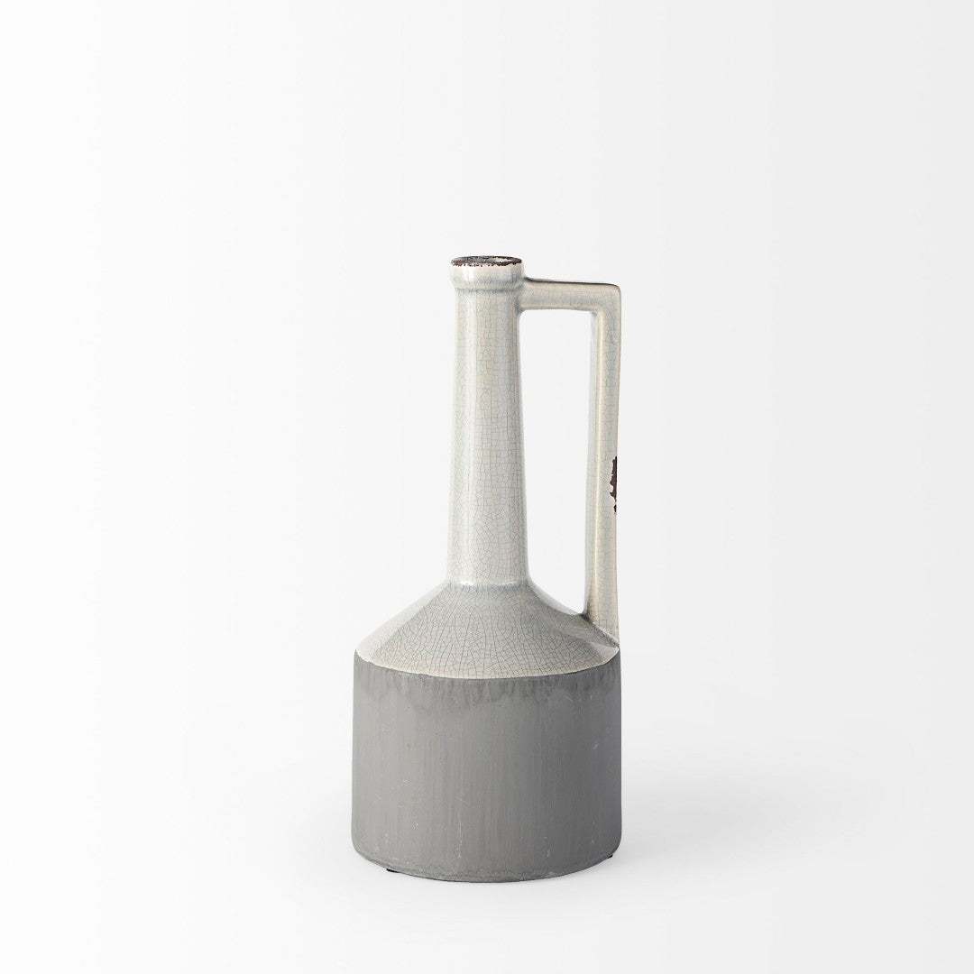 Bring contemporary flair to your tabletop or shelf with this Burton ceramic jug vase. Its two-tone gray and white finish pairs a glossy, thin-neck upper with a raw matte base for a refined yet organic look. Versatile enough to stand alone or be grouped with the rest of the Burton series, this piece complements modern, farmhouse, boho, and coastal interiors while arriving ready to display.