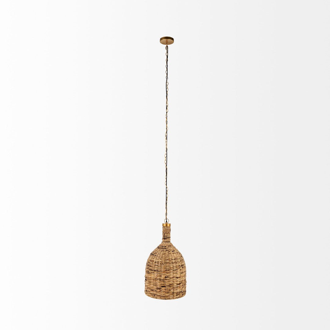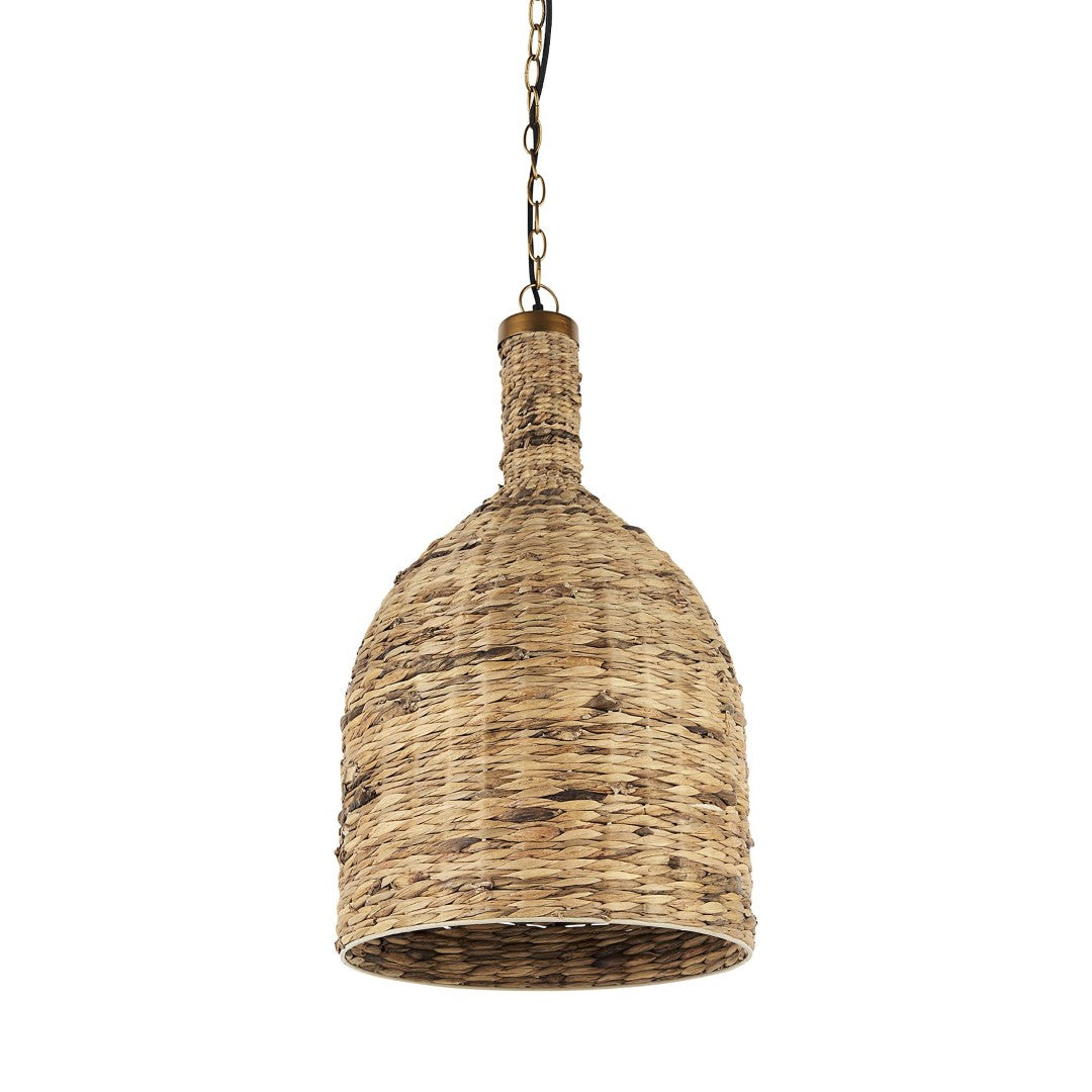 Bring warm, tropical texture to your space with the Campanile pendant light — a finely woven whicker dome accented by brushed gold metal hardware. Its sculptural silhouette and natural brown tones create a relaxed yet refined focal point that works over dining tables, kitchen islands, entryways, or cozy nooks. The single-bulb design casts inviting, spotlight-style illumination while the open weave creates an attractive play of light and shadow.