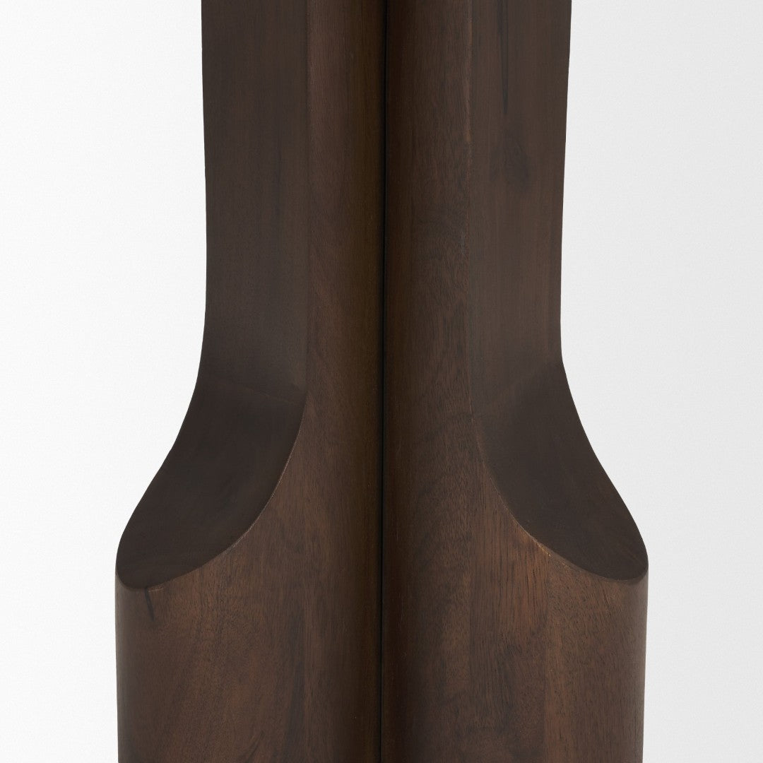 Elevate your living space with this sculptural accent table, where modern design meets warm, natural materials. Crafted from solid mango wood with a rich dark brown finish, its tray-style top and flowing waterfall legs create a striking focal point that’s equally functional—perfect beside a sofa, next to a lounge chair, or as a styled surface in an entryway.