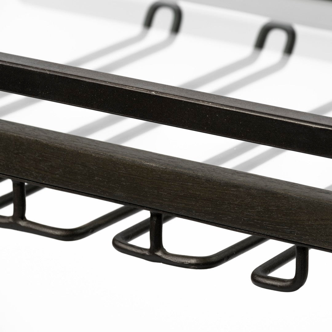 - Materials & Finish: Matte-black metal frame with wood accents and tempered glass shelving for durability and style