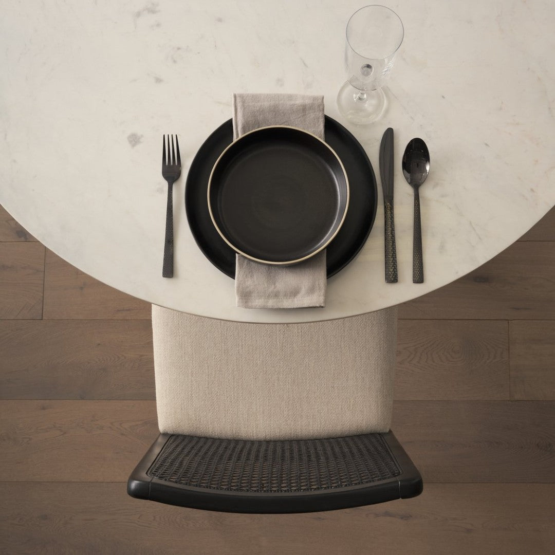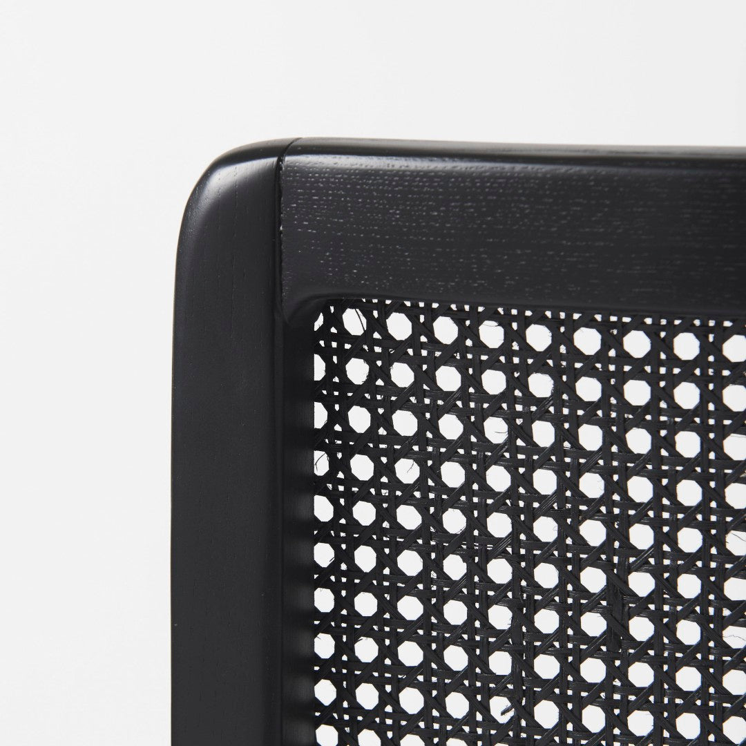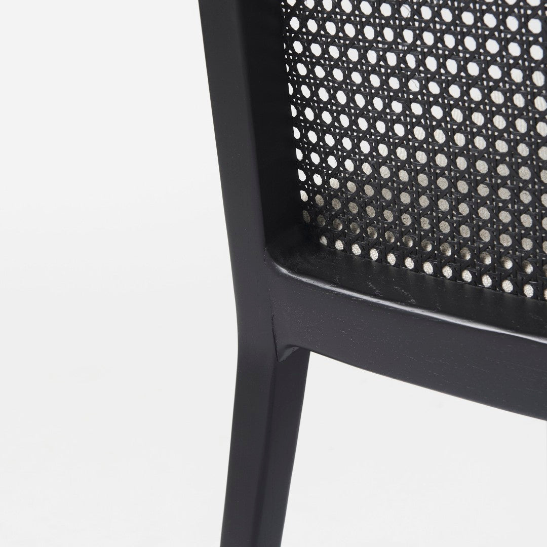 - Woven cane back adds airy texture and handcrafted warmth