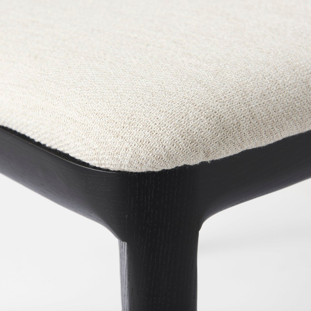 - Materials: Kiln-dried solid beech wood frame with a subtle whitewash finish; woven cane back for breathable, handcrafted texture; cream linen-blend fabric seat.