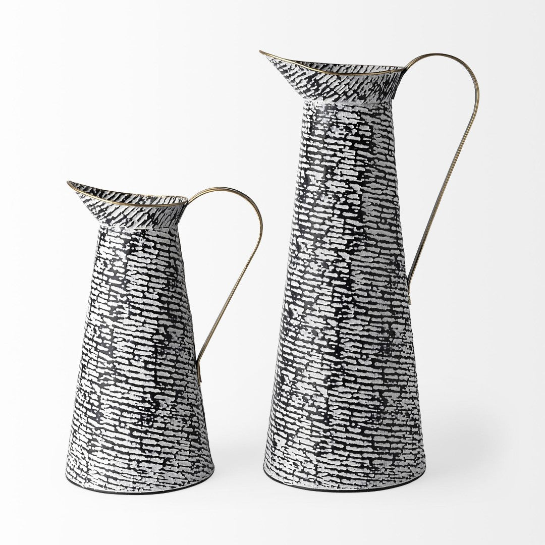 Brighten any room with the Colette small patterned vase — a striking blend of classic country charm and contemporary simplicity. Its black-and-white motif and metal construction give it a versatile silhouette that complements Modern Farmhouse, French Country, Hamptons, Mediterranean, and other relaxed styles. Use it as a standalone accent on a console or mantel, or pair it with fresh or dried florals to create a refined focal point.