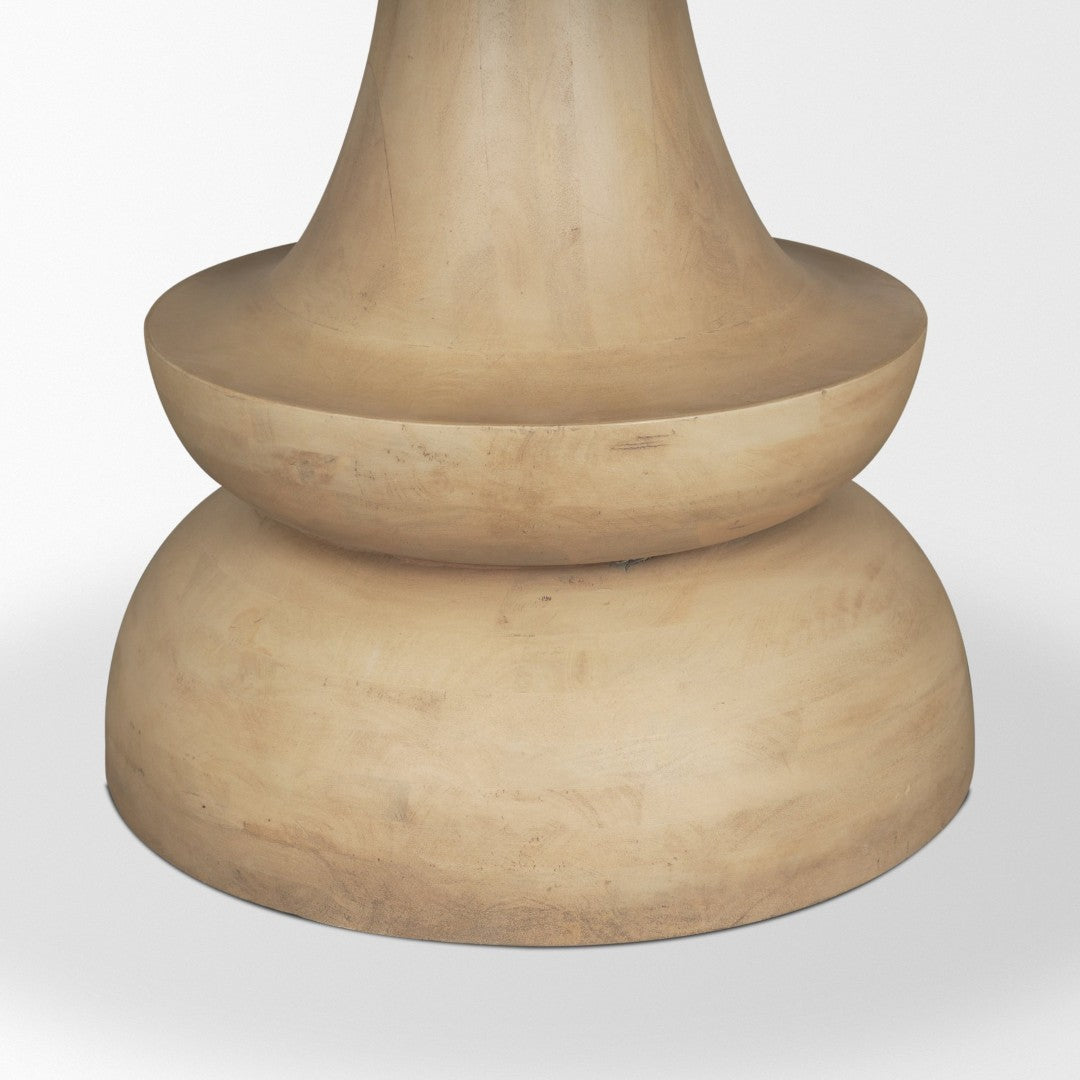 A striking blend of modern elegance and rustic warmth, this solid wood dining table is designed to be the centerpiece of any dining space. Its substantial, sculptural pedestal base and sandblasted dark brown/gray finish highlight the natural grain of mango wood while providing a durable, long-lasting surface that comfortably accommodates family meals and entertaining.