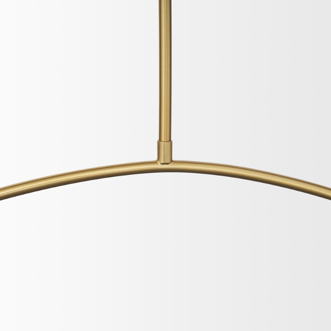 - Finish & Color: Brushed gold/brass finish with white shades for a warm yet modern contrast