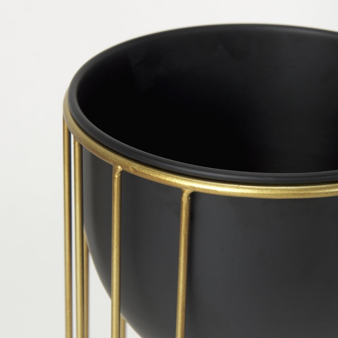 - Materials: Durable metal construction with a matte black planter and gold-finished iron pedestal for stable support