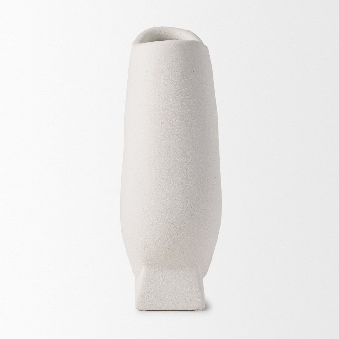 Elevate your decor with the Darian small textured matte white ceramic vase — a sculptural accent that pairs minimalist form with a tactile, gritty finish. Its refined silhouette and watertight design make it equally suited for displaying fresh blooms or standing alone as a modern decorative statement.