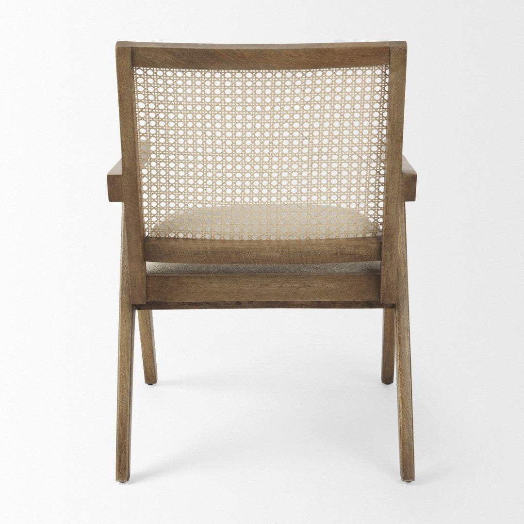 Elegant and timeless, this Donna accent chair pairs a light brown solid wood frame with a woven cane back and a plush beige linen-upholstered seat for a versatile look that complements coastal, transitional, and contemporary interiors. Its clean silhouette and slightly reclined back deliver comfortable, everyday seating while the durable mango wood construction ensures long-lasting stability and style.