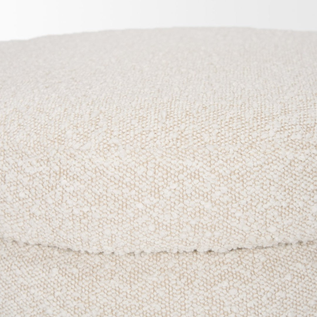 A chic and practical seating solution, this round upholstered ottoman combines soft cream boucle fabric with a hidden storage compartment for a tidy, stylish living space. Its compact profile and neutral tone make it versatile—use it as extra seating, a footrest, or discreet storage in a living room, bedroom, or entryway.
