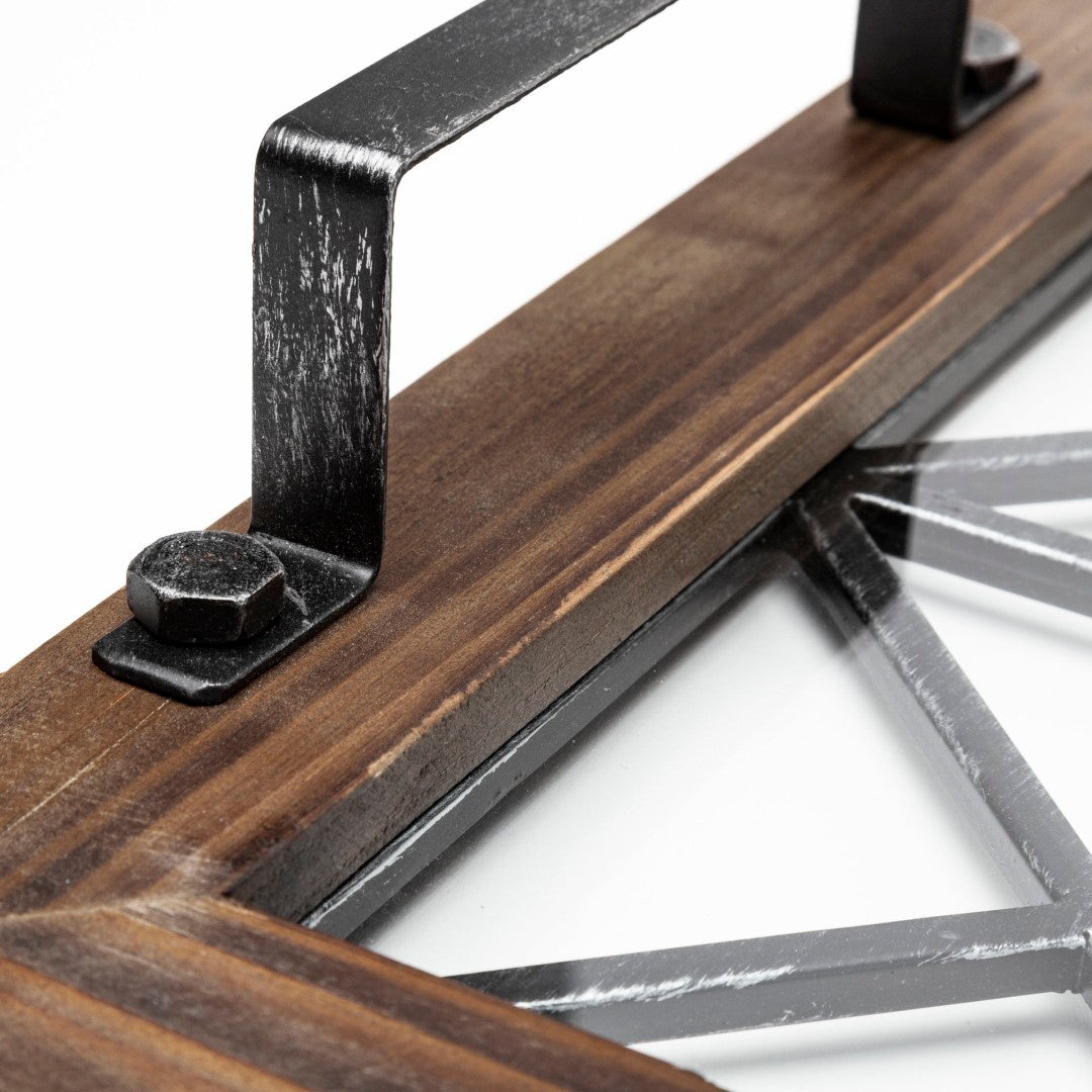 Elevate your tabletop or entryway with this elegant, mixed-material rectangular tray that blends metal, glass, and solid wood for a refined yet durable accent. Its clean lines and subtle curves suit a range of interiors—from modern and industrial to Hamptons and Art Deco—while the rustic black and brown finish adds a warm, sophisticated touch.