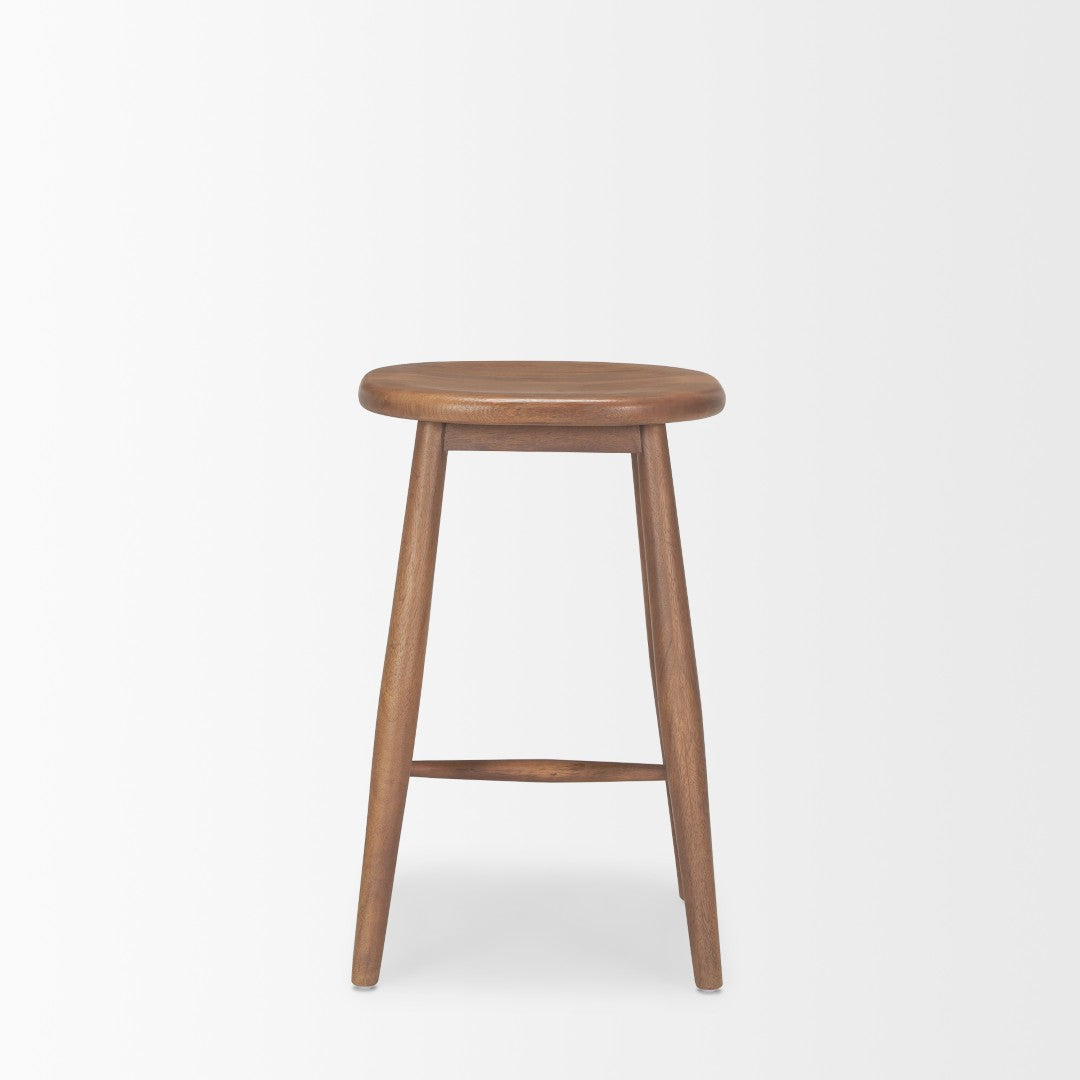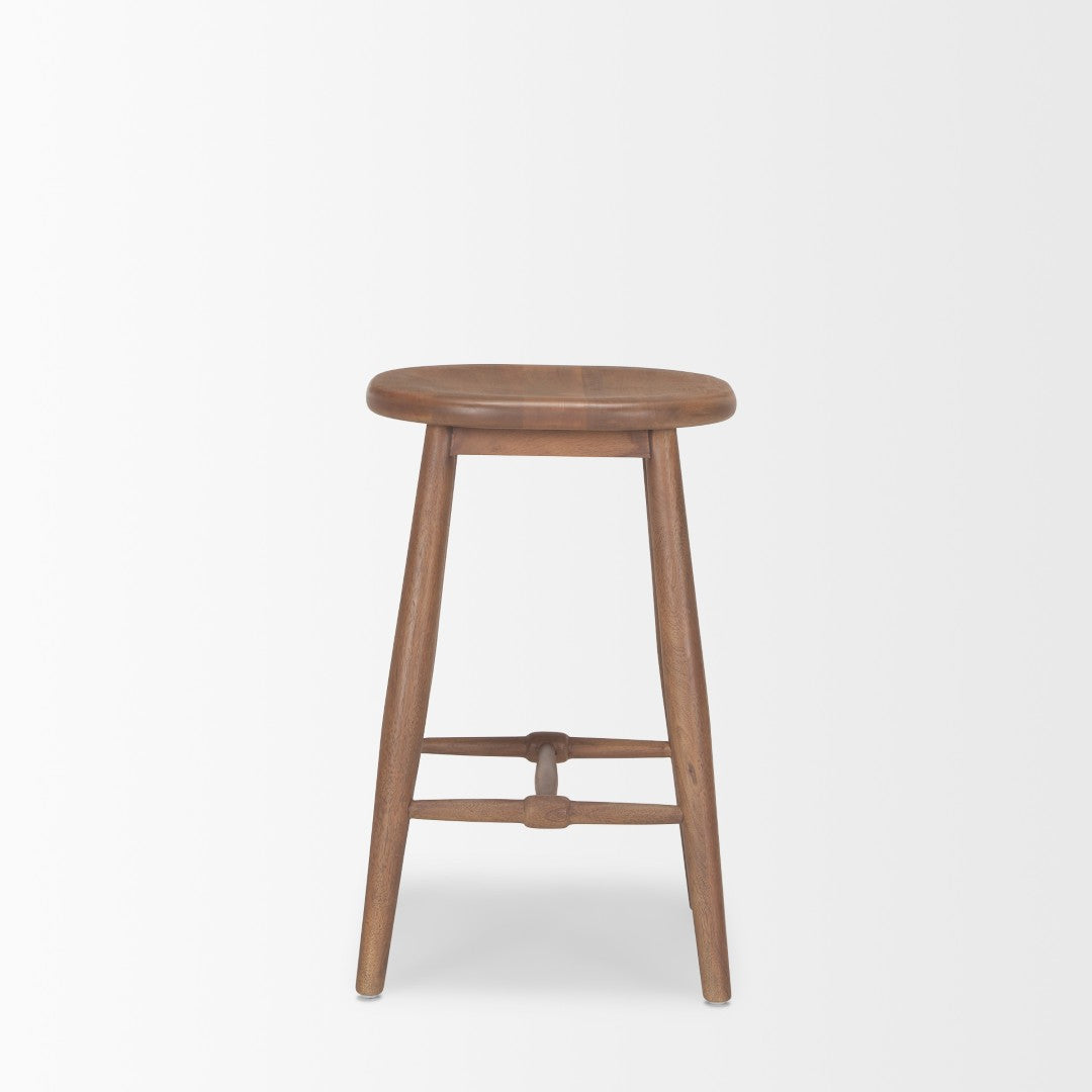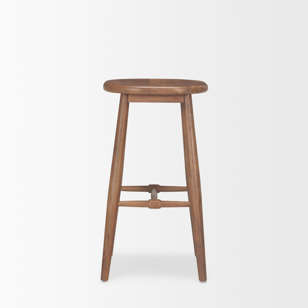Crafted from solid premium mango wood with a warm medium-brown finish, this bar stool blends classic silhouette and contemporary comfort. Its tapered spindle-style legs and dowel T-bar frame deliver both sturdy support and refined visual appeal, while the indented, ergonomic seat provides comfortable seating for extended use. Ideal for kitchen islands, home bars, or bistros seeking timeless, natural character.