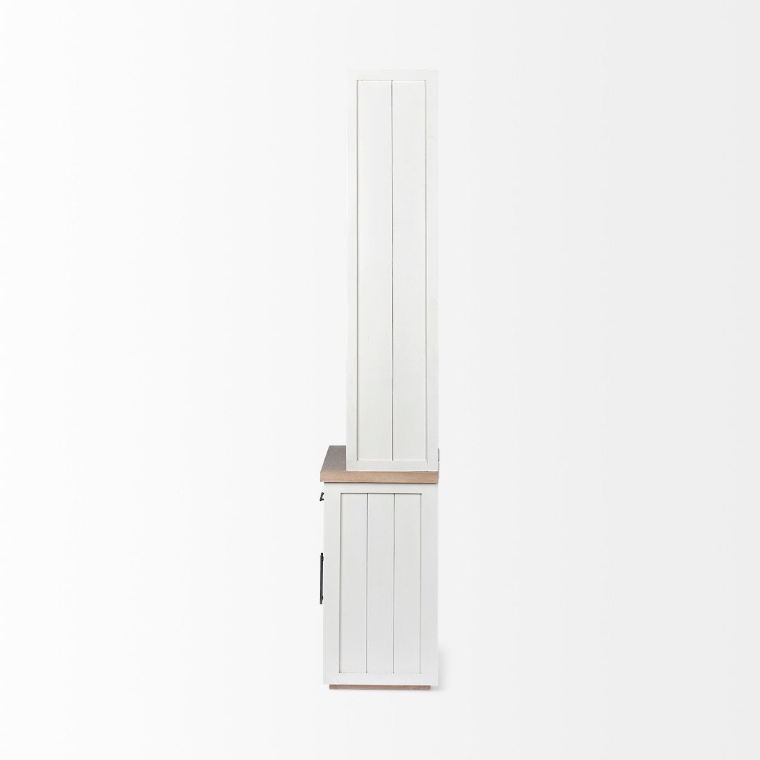 Bring classic farmhouse charm and durable solid-wood construction to your home with this versatile shelving unit. Thoughtfully designed for both display and concealed storage, it pairs white-painted mango wood with natural medium-brown accents to create a warm, timeless look that complements modern, rustic, and American design schemes. Practical and sturdy, it organizes books, decor, and everyday essentials while adding visual interest to living rooms, entryways, home offices, or bedrooms.