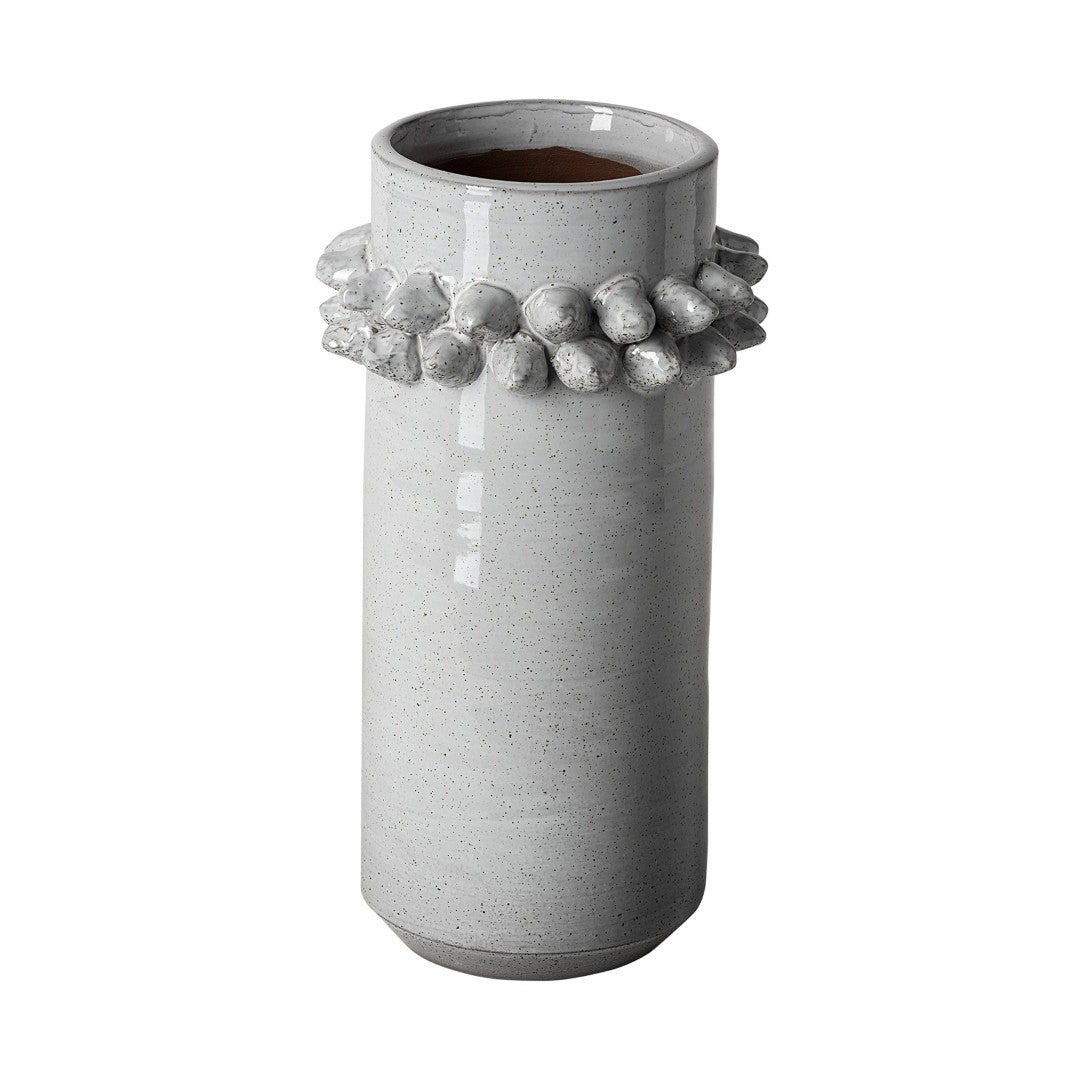- The Farmhampton is finished in a grey polish with speckled details and a spoked rim, making it a stunning vase that is sure to turn heads.