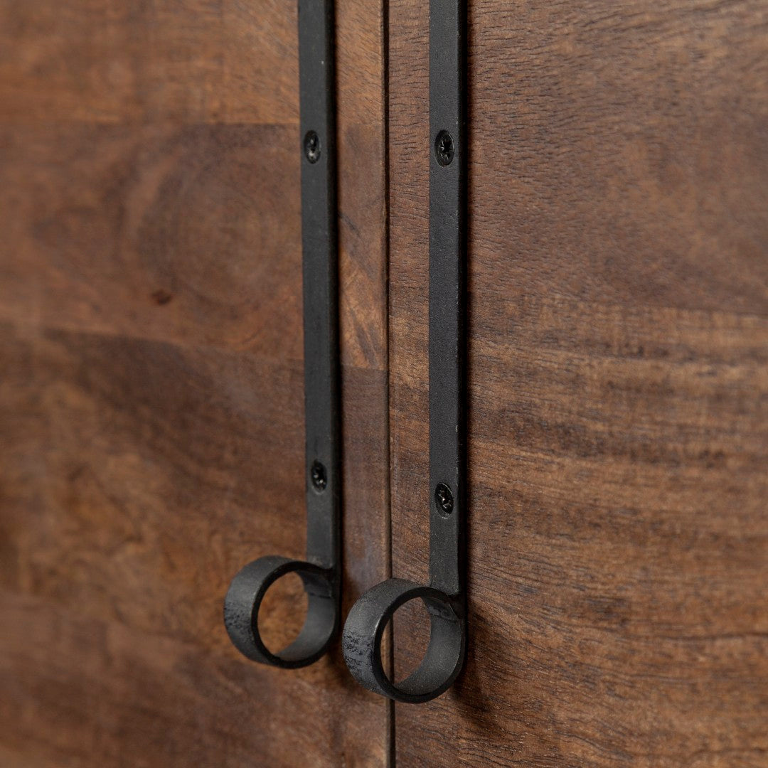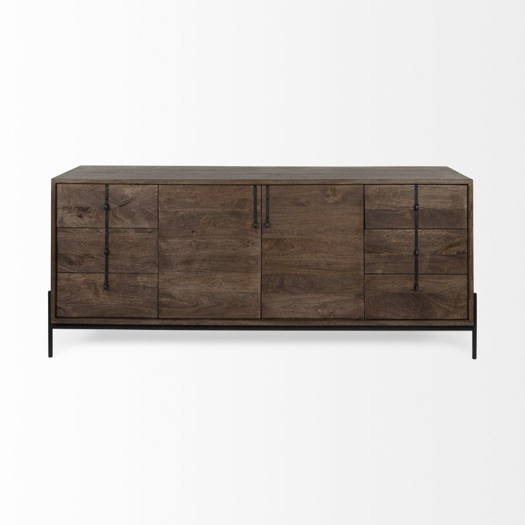 An elegant and versatile sideboard that blends mid-century and contemporary influences with warm wood tones and black iron accents. The Glenn VI delivers generous storage, thoughtful details, and a broad top surface suited for a TV or decorative display—making it a functional focal point for living rooms, dining areas, or entryways.