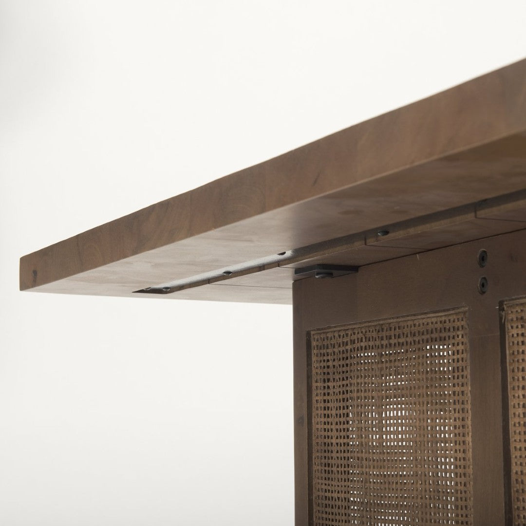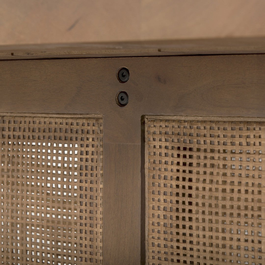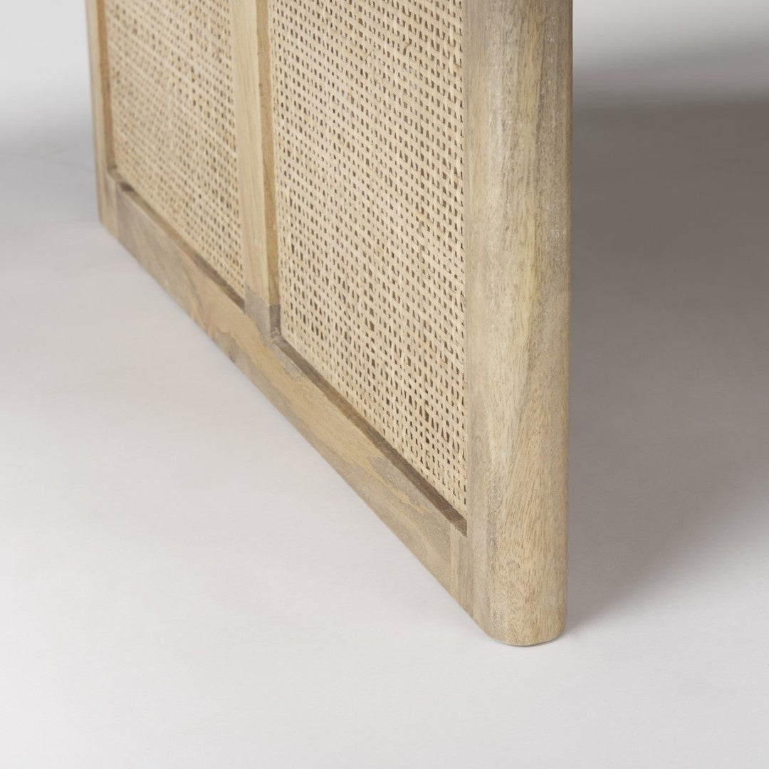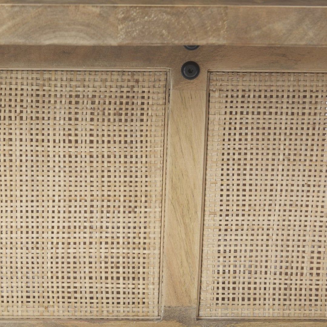 - Design Accents: Woven cane panels inset on the sides, adding texture and a touch of organic style