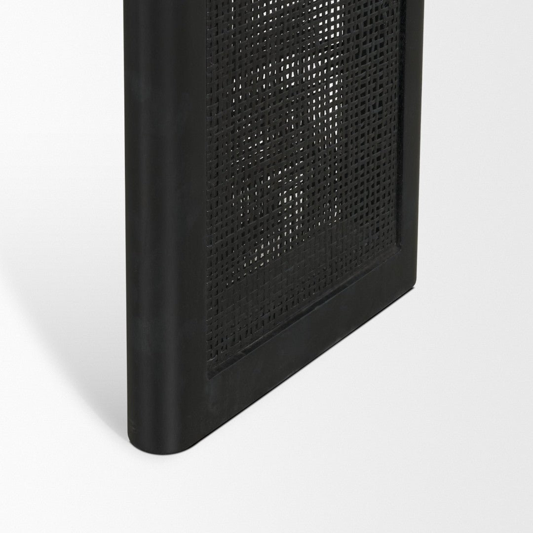 - Materials: Solid mango wood construction for durability and a rich brown finish; natural cane panels on the sides for added texture and visual interest.