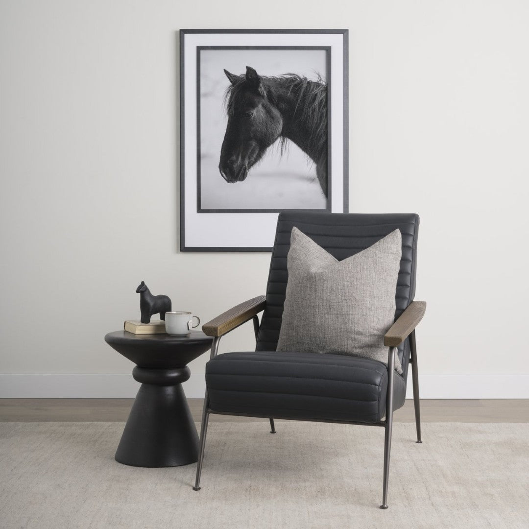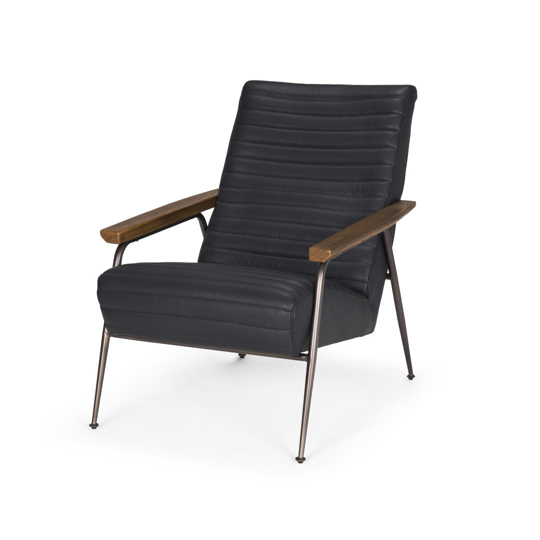 Experience modern comfort and timeless style with this premium accent chair. Smooth black leather, warm medium-brown wood armrests, and a sleek black metal frame combine to create a versatile piece that complements Mid-Century Modern, Relaxed Modern, Scandinavian, Tropical, and Modern Farmhouse interiors. Built for everyday use, the chair balances supportive comfort with a refined, contemporary silhouette.