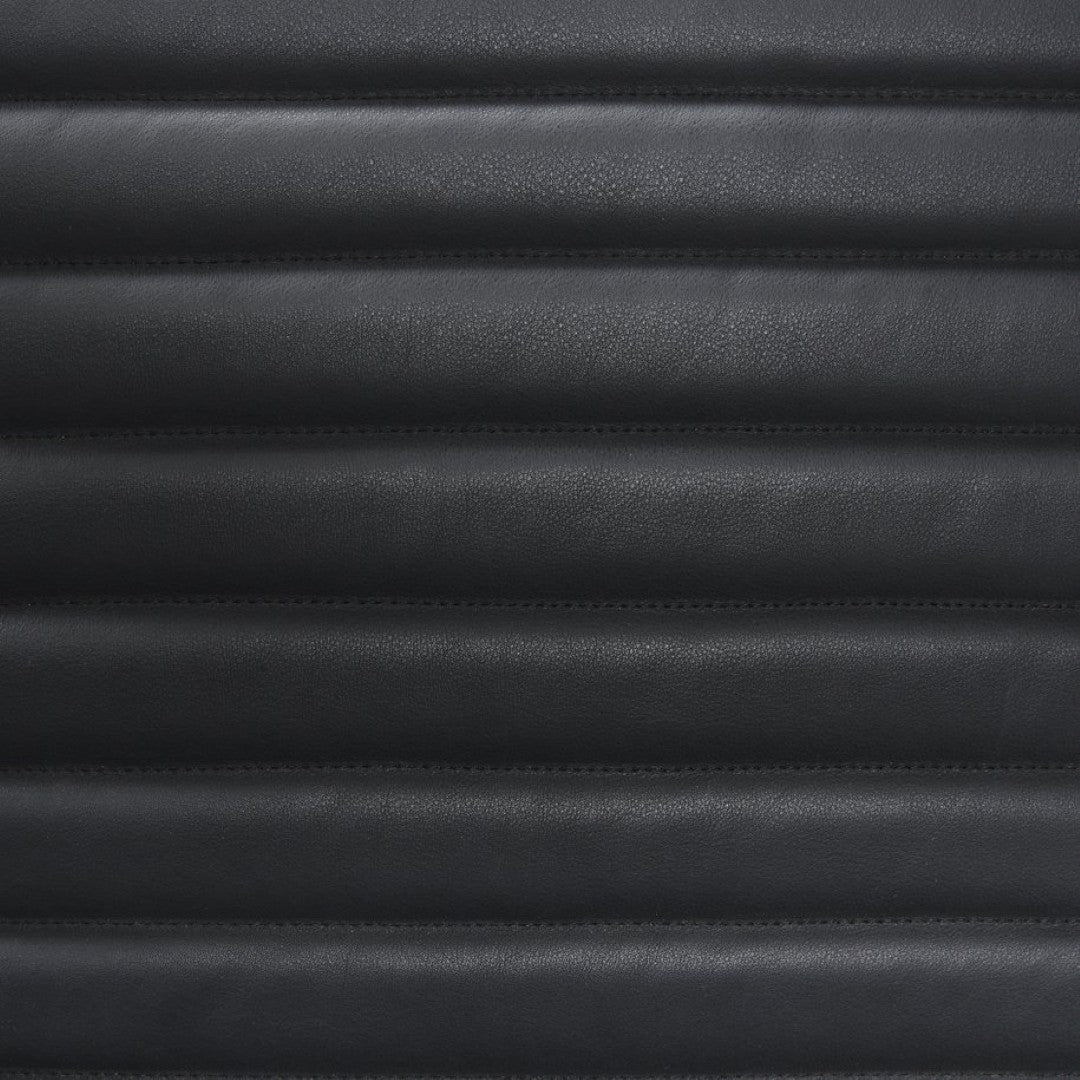 - A buttery-soft black leather seat and back are supported by a sleek black metal frame.