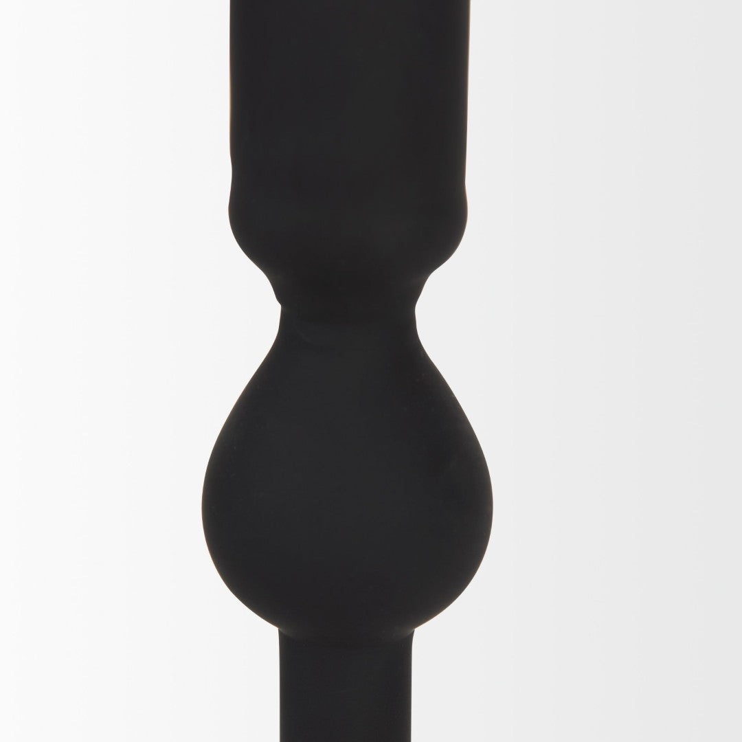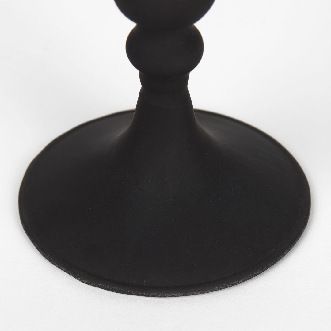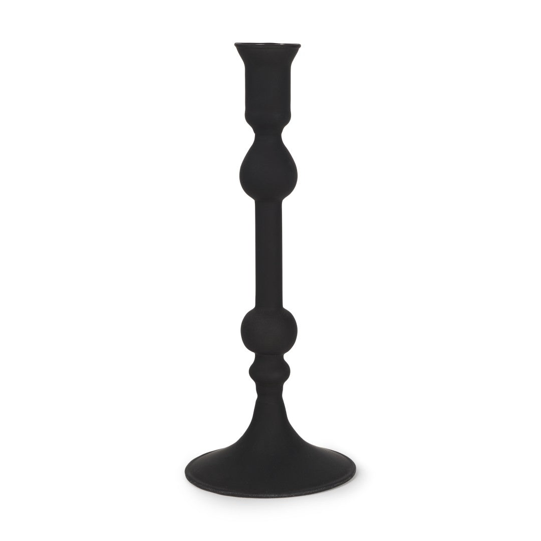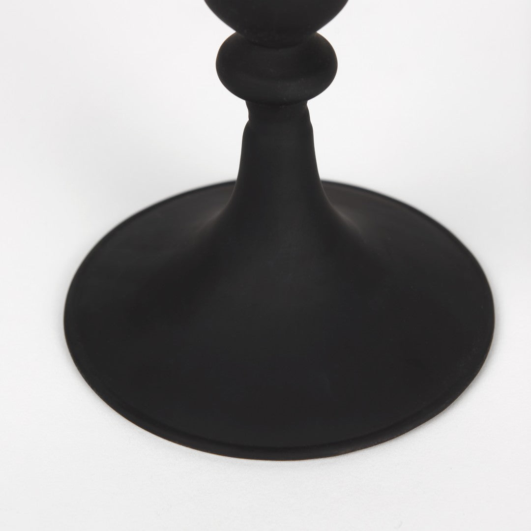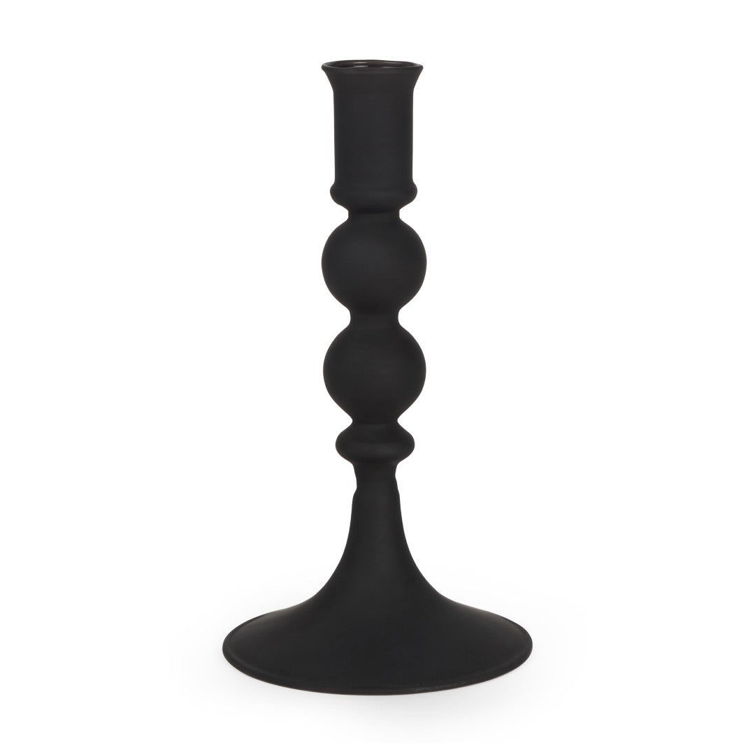 Elevate your tabletop or mantel with the Haute small matte black candlestick — a striking blend of sculptural form and lightweight blown glass. Its matte black finish gives the look of cast metal while the delicate glass construction keeps it surprisingly light, making it both decorative and easy to handle. Designed specifically for tapered candles, this piece adds a modern, artistic accent to dining settings, living rooms, or bedside displays.