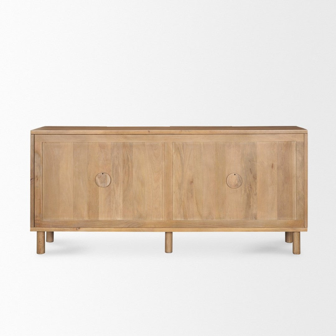 Elevate your living or dining space with the Heera sideboard — a finely crafted storage piece that blends solid wood durability with artisanal CNC-carved detailing. Its light brown finish and offset diamond motif lend a timeless, textured look while providing generous storage and surface space for serving, display, or organization.