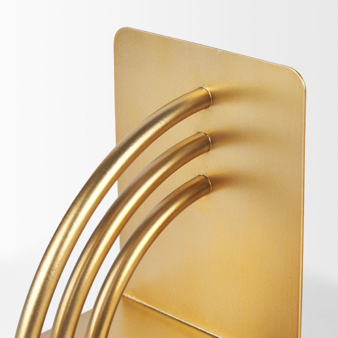 Add a touch of elegant shine to your shelves with these sculptural gold metal bookends. Crafted from solid iron with a lustrous painted gold finish, their graceful rainbow-like arches bring both stability and a decorative focal point to books, magazines, or small art objects—perfect for living rooms, home offices, or bedside tables.
