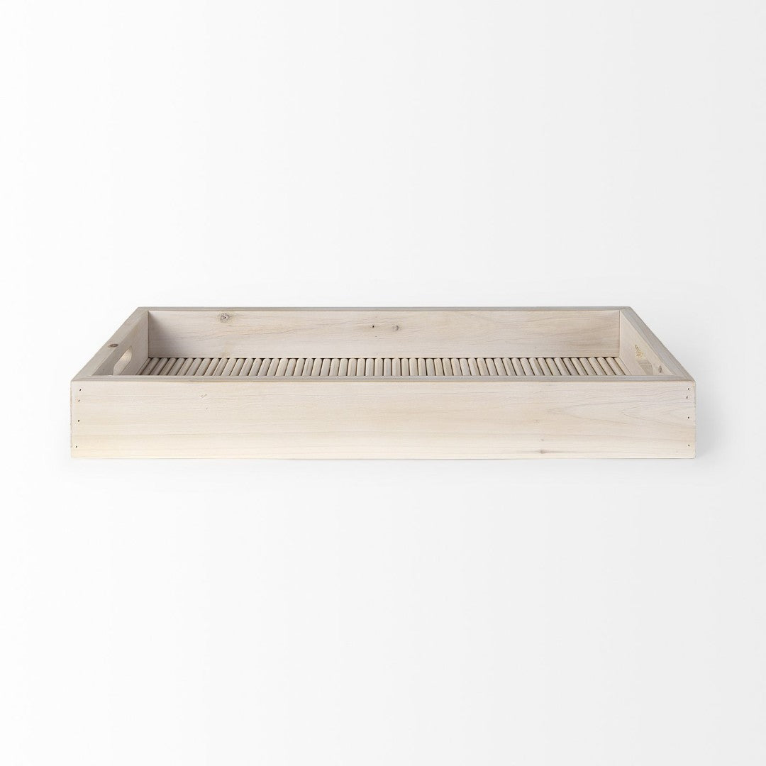 Bring effortless coastal charm to your home with this beautifully crafted natural wood serving tray. Clean lines, subtle curves, and a warm blonde finish make it equally suited for serving, organizing, or styling decorative arrangements on coffee tables, countertops, and consoles.