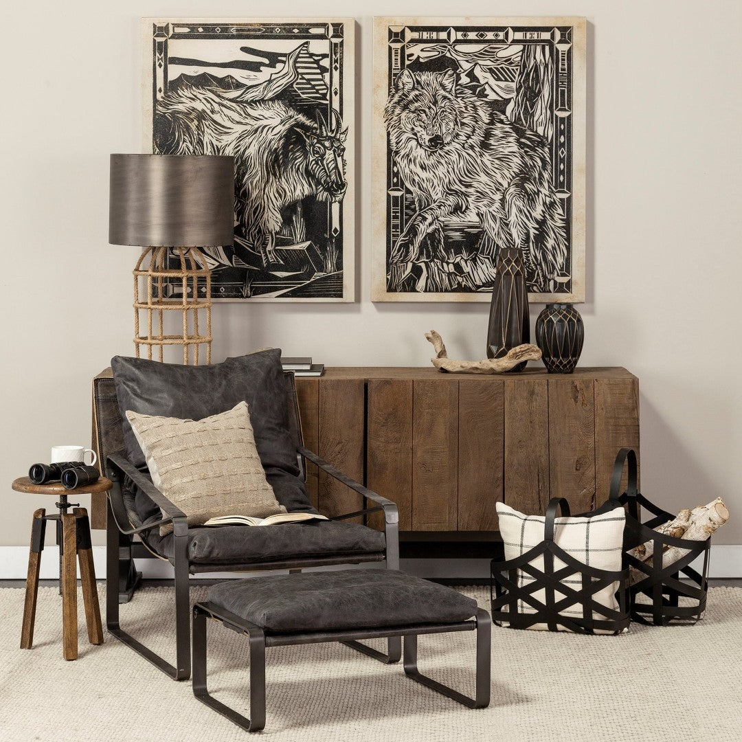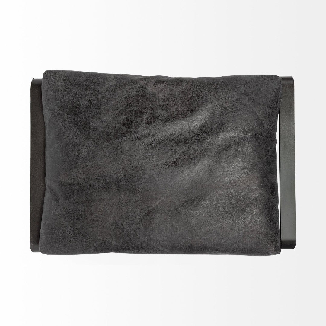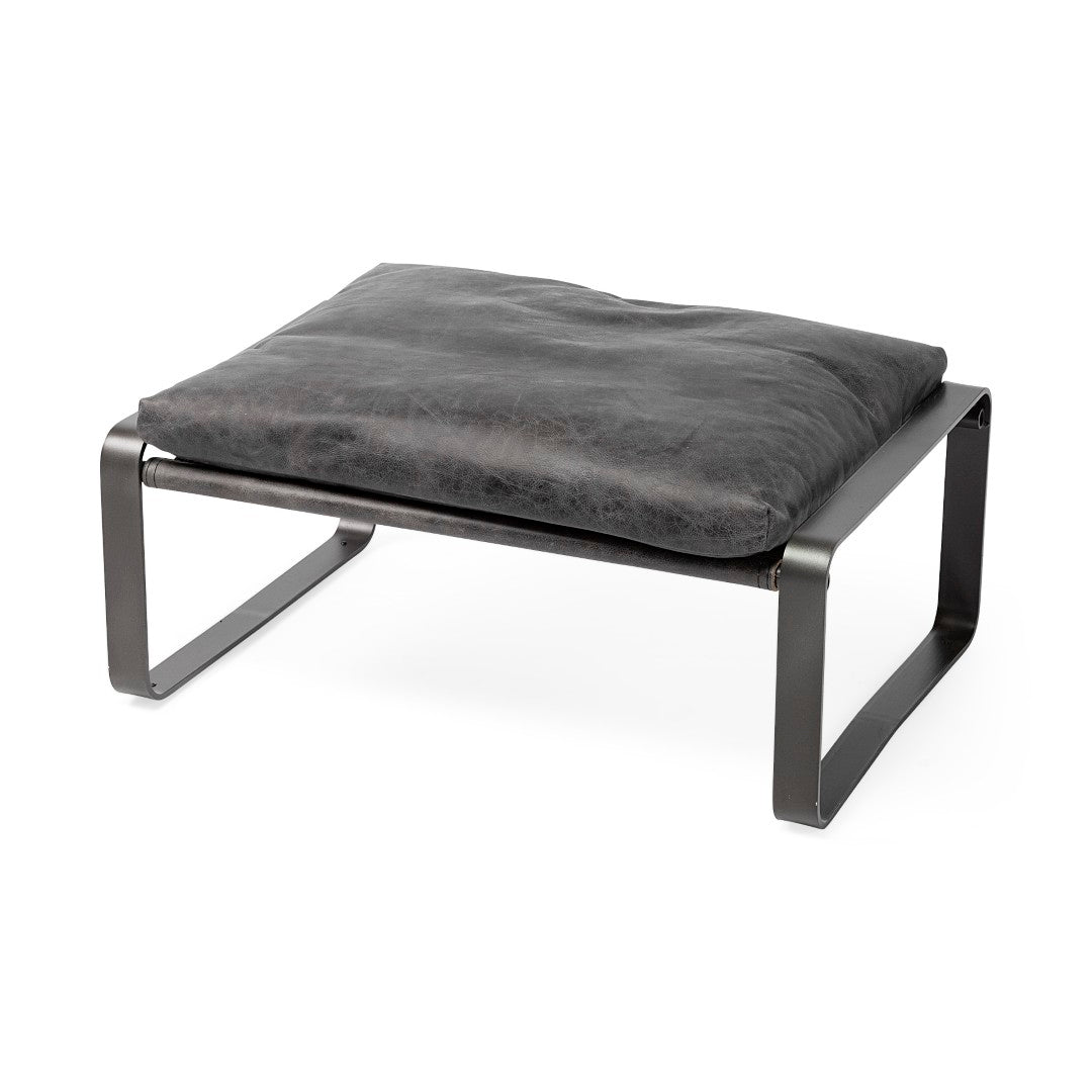 Introduce a touch of modern industrial elegance with this compact, high-quality ottoman. Its genuine black leather cushion and black metal base combine comfort and durability in a streamlined silhouette that works equally well as extra seating, a footrest, or a low-profile occasional table.