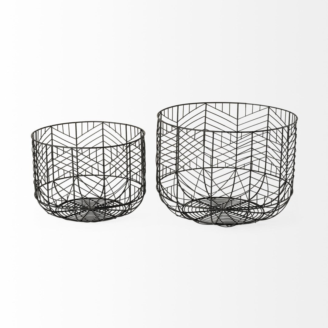 Add sculptural interest and practical storage to your décor with the Idris set of two metal geometric mesh bowls. Crafted in a matte black finish, these bowls blend industrial strength with modern style to create a versatile accent for living rooms, kitchens, entryways, or offices. Their open geometric mesh construction provides visual lightness while offering functional capacity for fruit, decorative objects, linens, or everyday items. Delivered pre-assembled, the Idris set is ready to display and designed to complement a variety of interiors from Urban Loft to Modern Farmhouse.