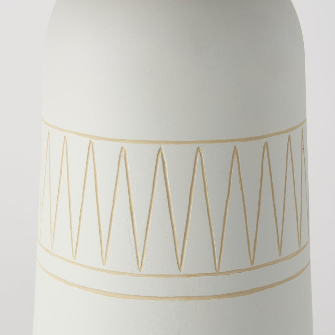 Add a touch of modern sophistication to any room with this Javier table lamp. Its sleek black ceramic base, cream fabric shade, and subtle gold zig-zag detailing deliver a balanced mix of warmth and contemporary style that works equally well in living rooms, bedrooms, or professional settings.