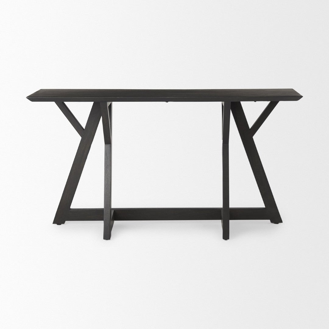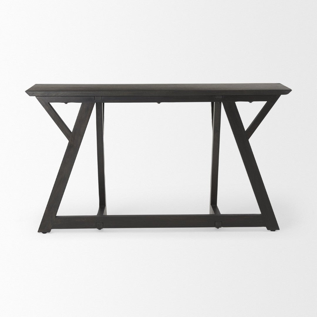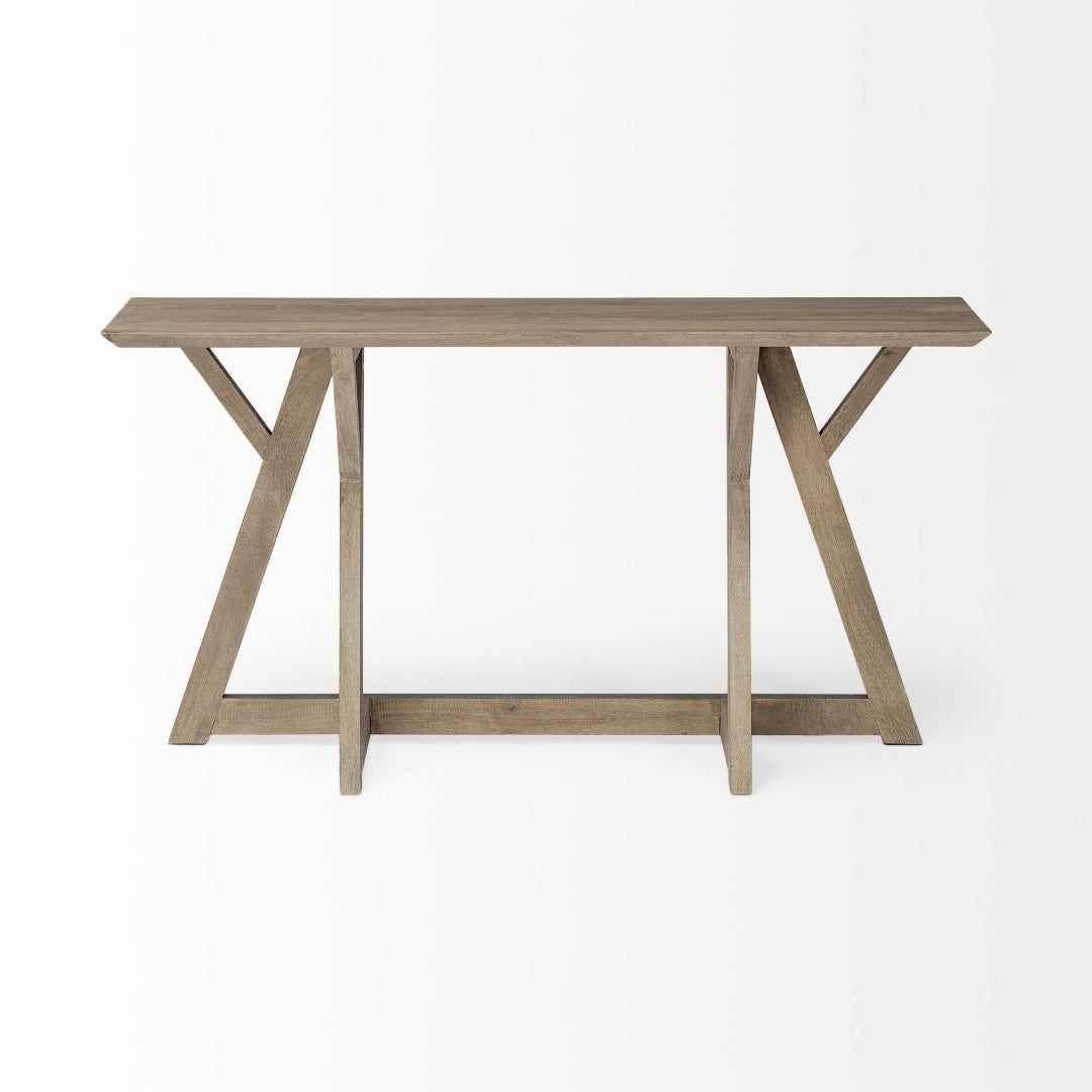 Elevate your entryway or living room with the Jennings I console table — a refined blend of mid-century and relaxed modern styling that pairs clean lines with warm, natural wood tones. Crafted from premium Indian Mango wood, this rectangular console makes a lasting impression with its beveled top, geometric base, and durable construction designed for everyday use.